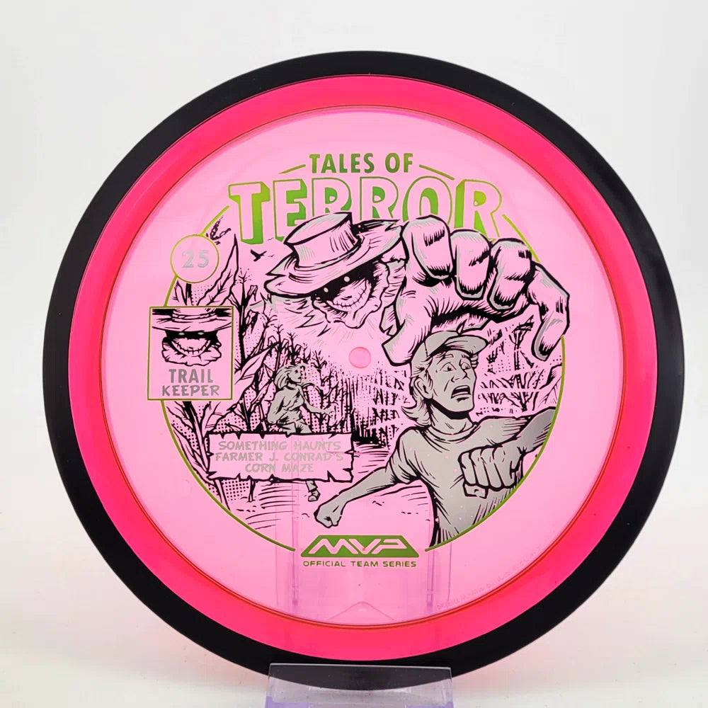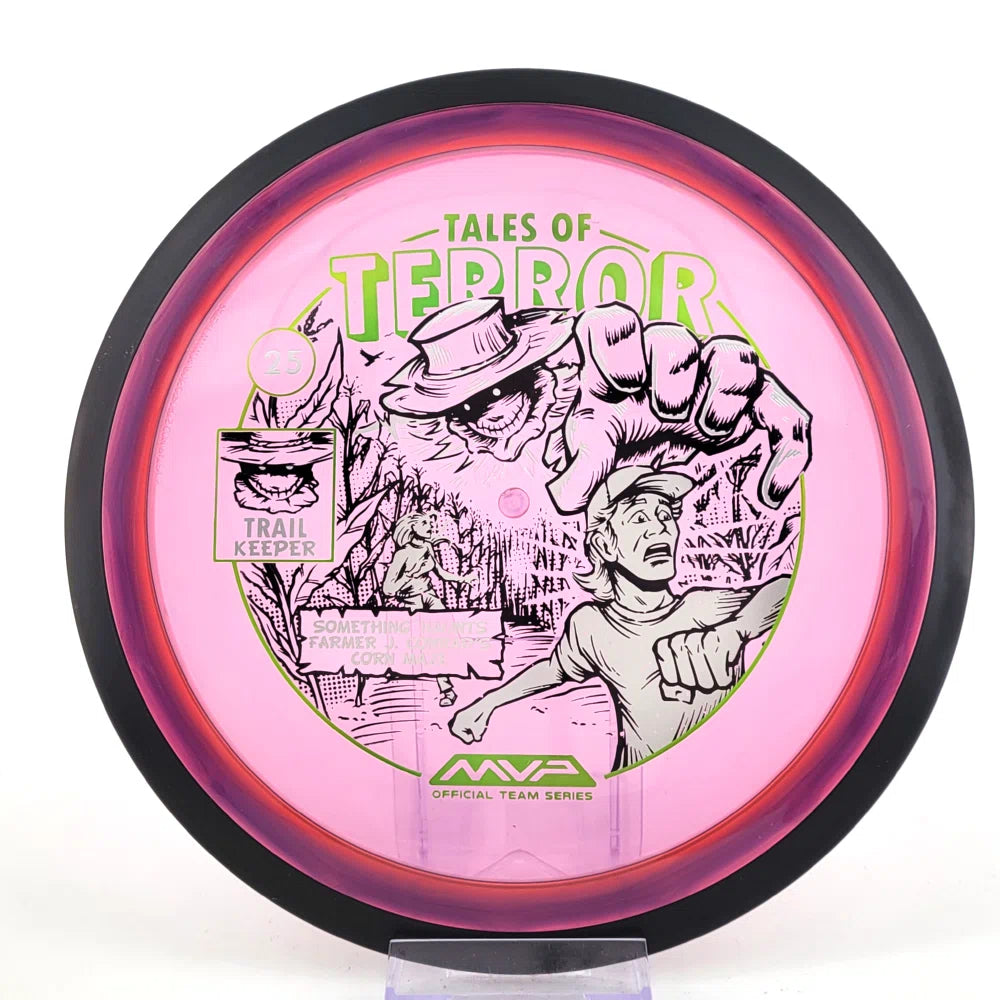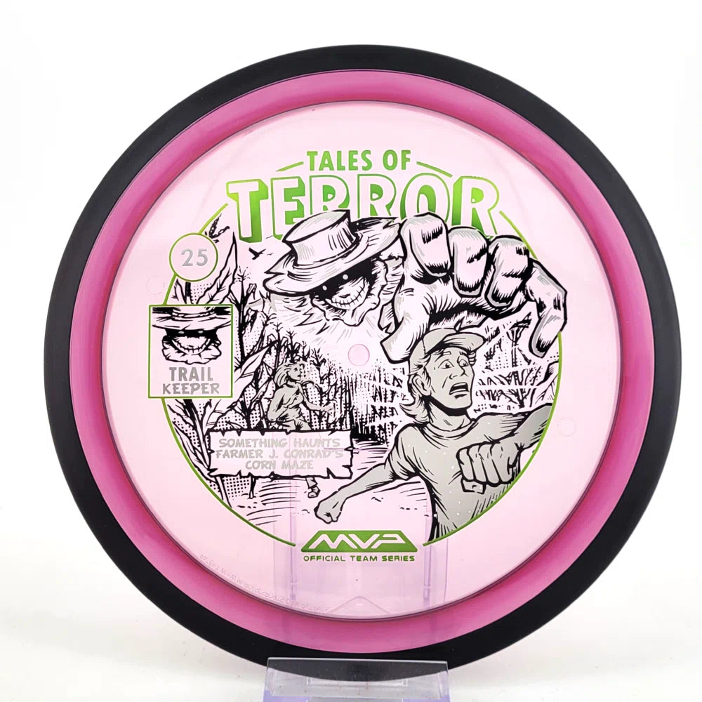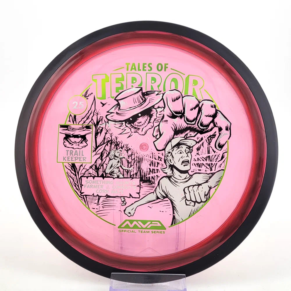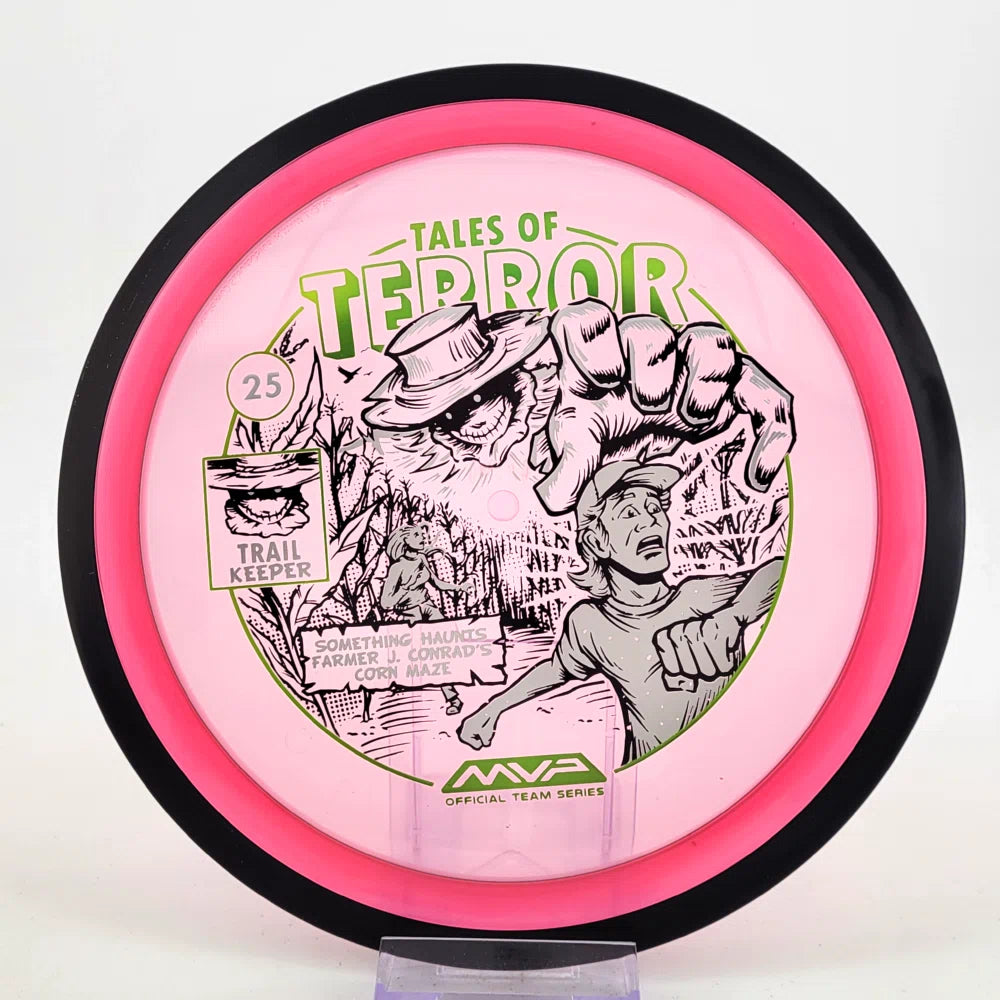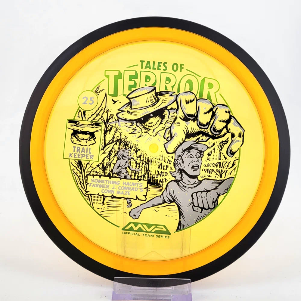 The highly requested fan favorite Proton Trail has returned! Green C Studio adorns this disc with a glimpse of the Trail Keeper haunting Conrad’s Corn Maze, a classic horror story. Excelling in hyzer-flip drives, turnovers, and straight shots, the Trail has become one of the most popular drivers in the MVP lineup that throwers of all power levels will find significant use for.