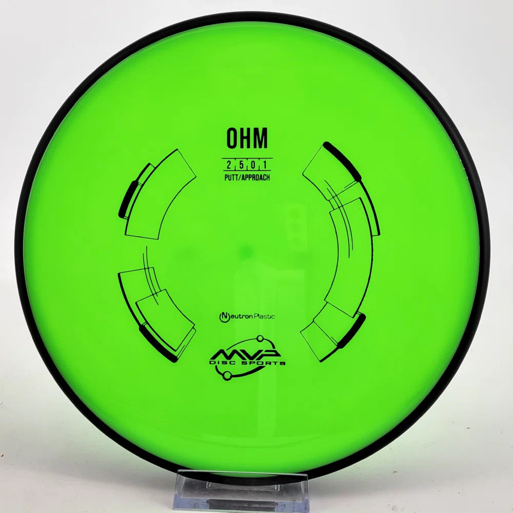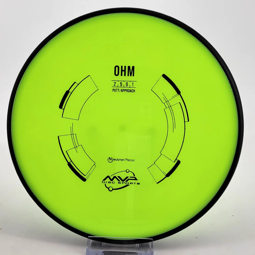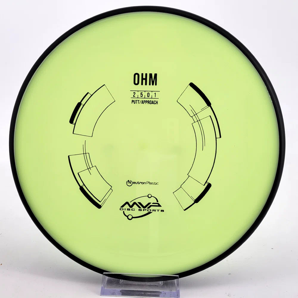 Laser straight drives and confident putts are the best ways to describe the brand new Ohm from MVP. Debuting in Neutron plastic, the Ohm is inspired by the Streamline fan-favorite Pilot, but with enhanced GYRO® effect. The results are incredible! The tried and true shape provides both a reliable grip and loads of glide for some truly impressive drives and putts. The Ohm is sure to find a place in every disc golfer’s bag and, thanks to the durability of Neutron plastic, stay there.