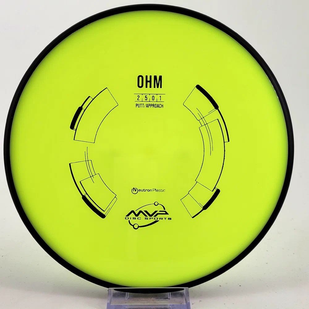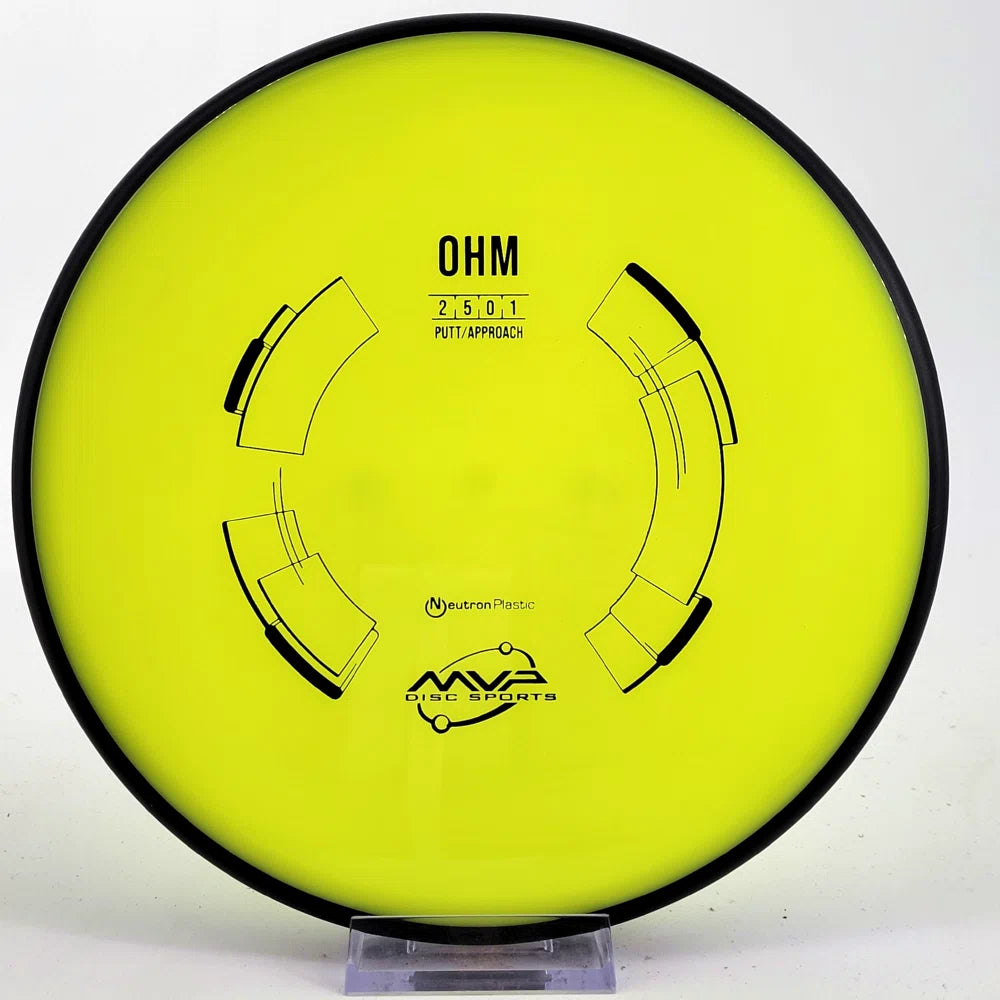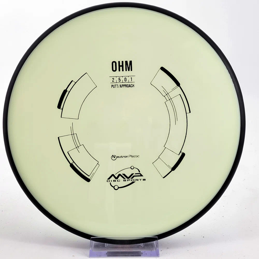 Laser straight drives and confident putts are the best ways to describe the brand new Ohm from MVP. Debuting in Neutron plastic, the Ohm is inspired by the Streamline fan-favorite Pilot, but with enhanced GYRO® effect. The results are incredible! The tried and true shape provides both a reliable grip and loads of glide for some truly impressive drives and putts. The Ohm is sure to find a place in every disc golfer’s bag and, thanks to the durability of Neutron plastic, stay there.