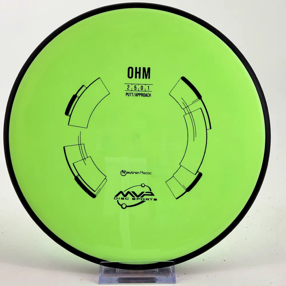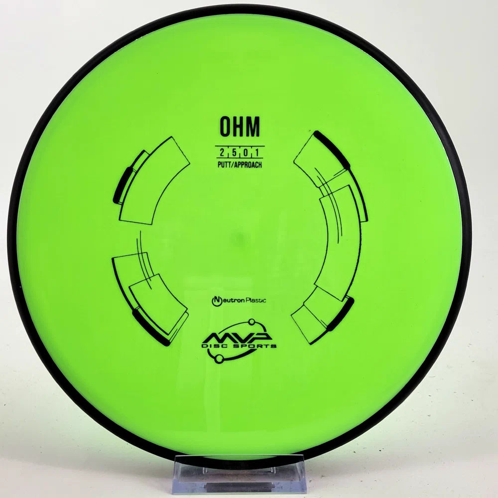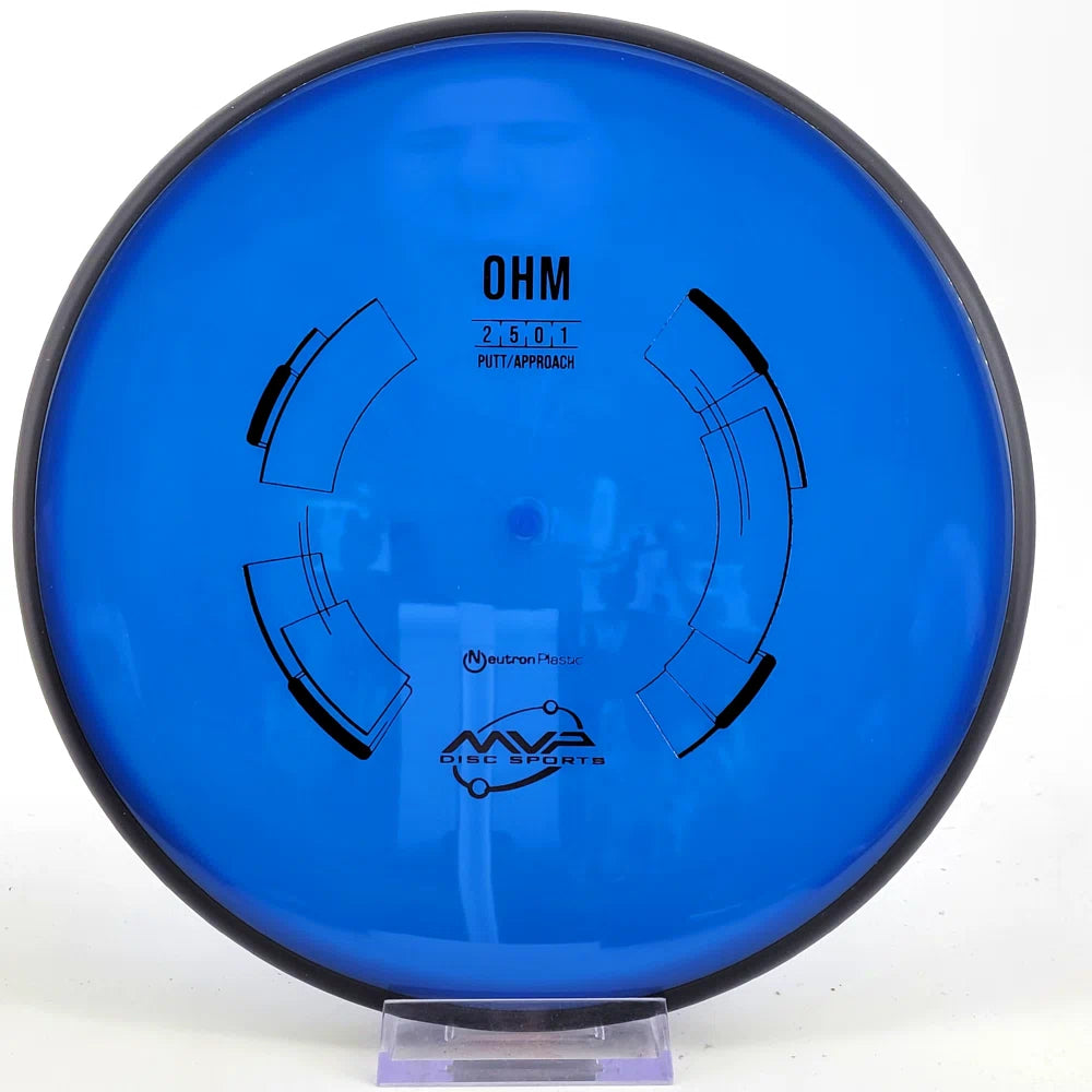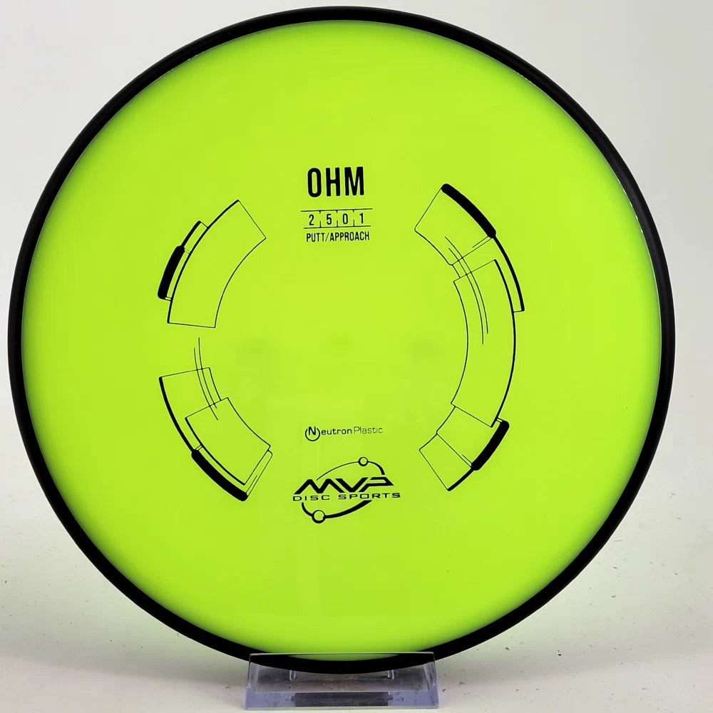 Laser straight drives and confident putts are the best ways to describe the brand new Ohm from MVP. Debuting in Neutron plastic, the Ohm is inspired by the Streamline fan-favorite Pilot, but with enhanced GYRO® effect. The results are incredible! The tried and true shape provides both a reliable grip and loads of glide for some truly impressive drives and putts. The Ohm is sure to find a place in every disc golfer’s bag and, thanks to the durability of Neutron plastic, stay there.