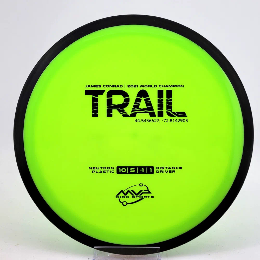 It’s time to experience the next incredible disc in the James Conrad line - and the next staple in our bags - the Neutron Trail! The first official 10 speed driver in the MVP lineup, the MVP Trail is a stable-understable distance driver that, as you might expect of a Conrad disc, excels in hyzer-flip drives and turnovers. Releasing with flight numbers of 10 | 5 | -1 | 1, throwers of all power levels will find the Trail to be an exceptionally responsive driver for a variety of shot shapes, making the Trail a phenomenal disc for all skill levels.