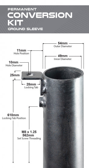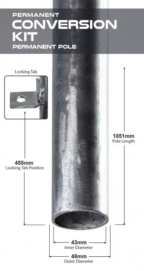 The permanent conversion kit makes it possible to convert portable course baskets into permanent targets, solidifying your course design for future play. The permanent conversion kit seamlessly transforms both our Black Hole® Portal and Black Hole® Gravity course baskets. This kit comes complete with one permanent pole and one ground sleeve, both of which have been designed with longevity and durability in mind. The complete galvanized steel construction makes for a lifelong solution that can withstand the elements.