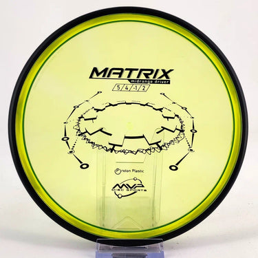 The MVP Matrix is a precision overstable midrange that brings consistency to your mid-range game! The Matrix is designed to resist turnover for all power levels and situations, and its stability is best described as a longer Axiom Envy. Matrix should have a long straight travel for most throwers, followed by a dependable fade. While this is not a “meathook” style overstable midrange, its utility is not to be underestimated. Release angles make all the difference with this type of midrange, yielding useful flights on releases from anhyzer to flat and hyzer.