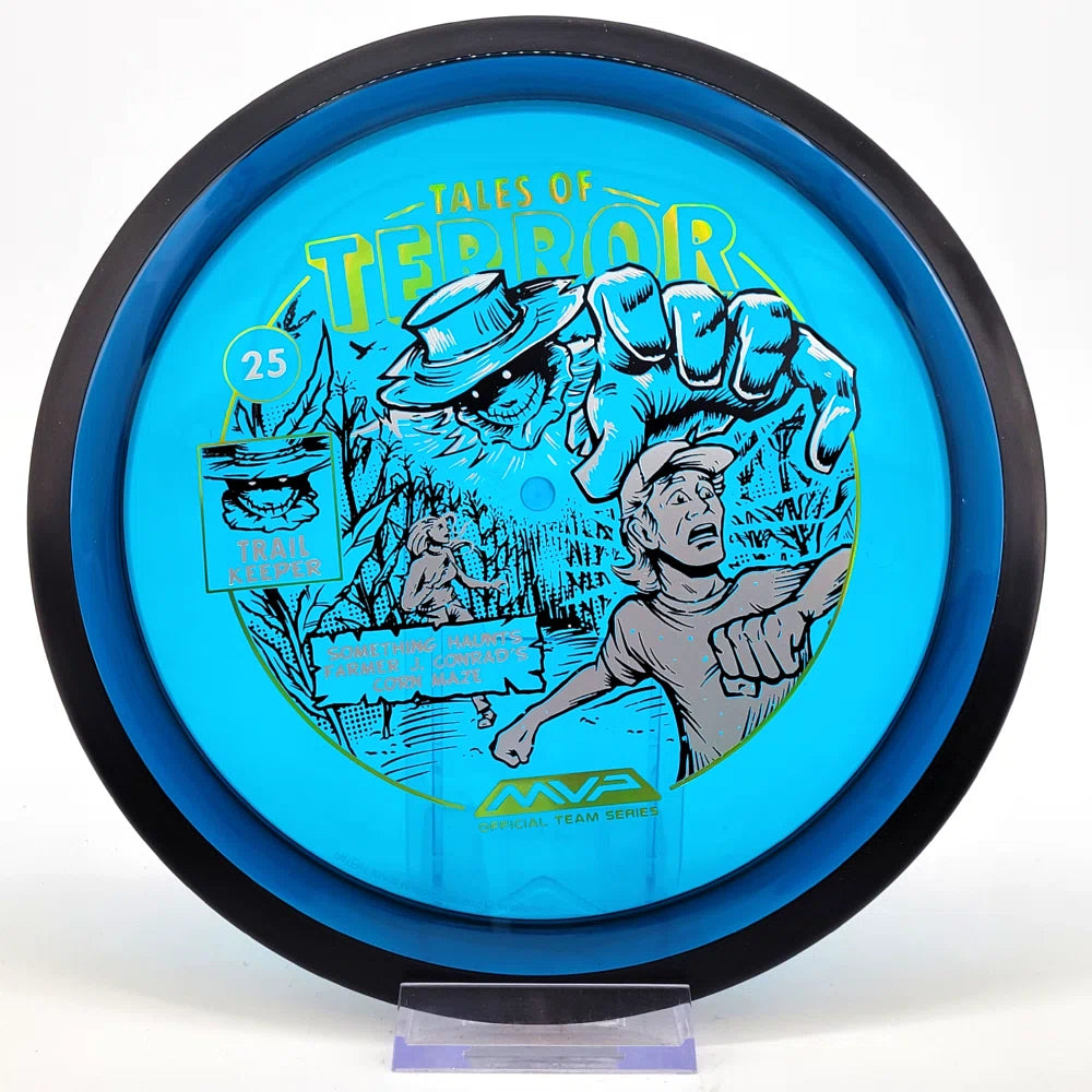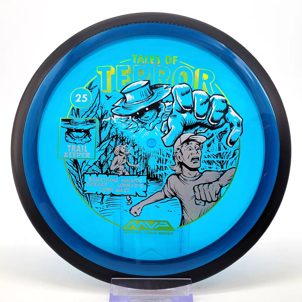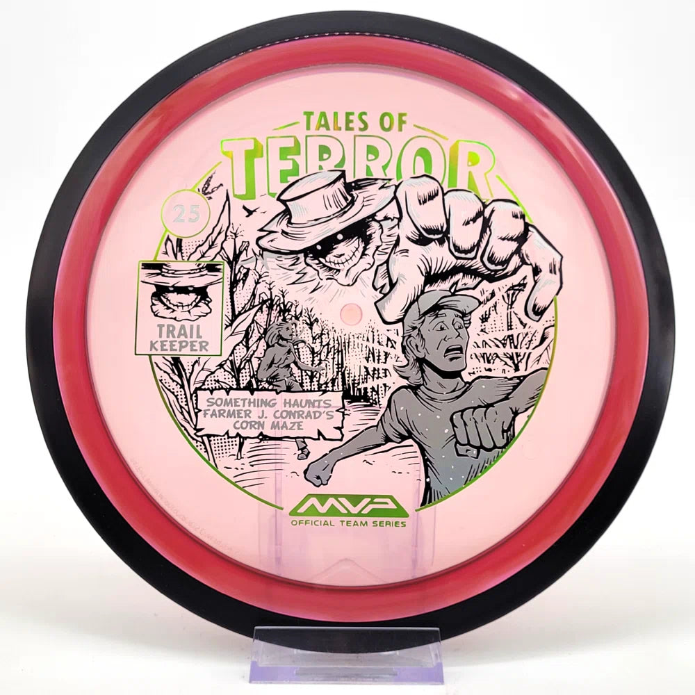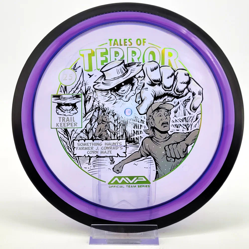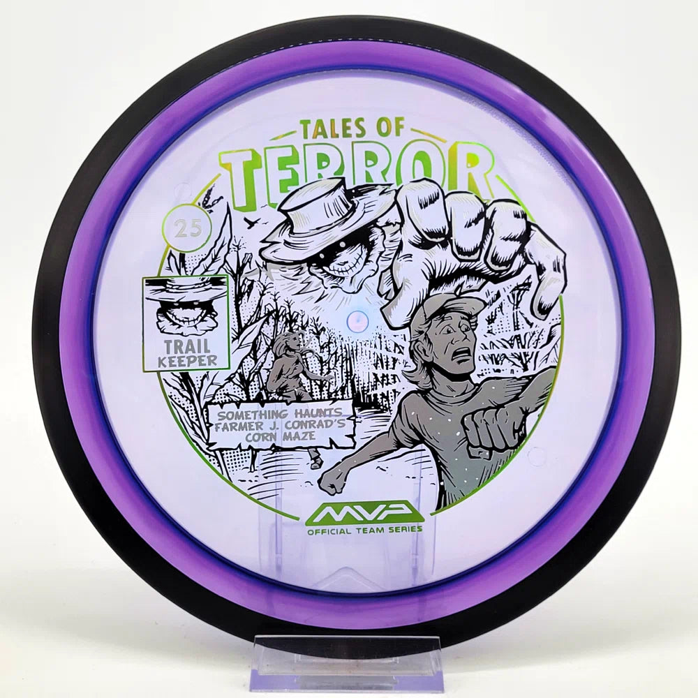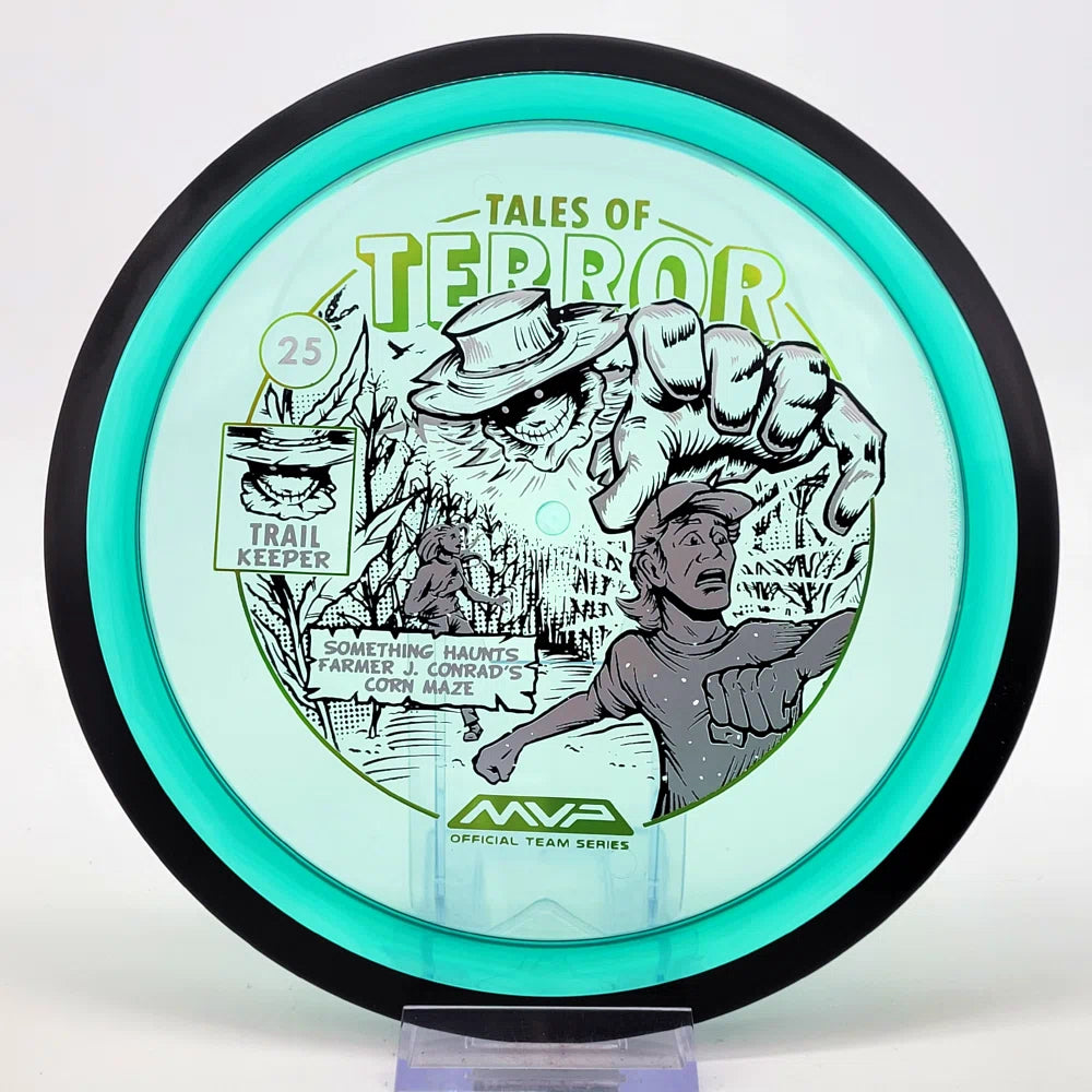The highly requested fan favorite Proton Trail has returned! Green C Studio adorns this disc with a glimpse of the Trail Keeper haunting Conrad’s Corn Maze, a classic horror story. Excelling in hyzer-flip drives, turnovers, and straight shots, the Trail has become one of the most popular drivers in the MVP lineup that throwers of all power levels will find significant use for.