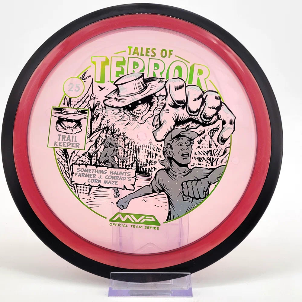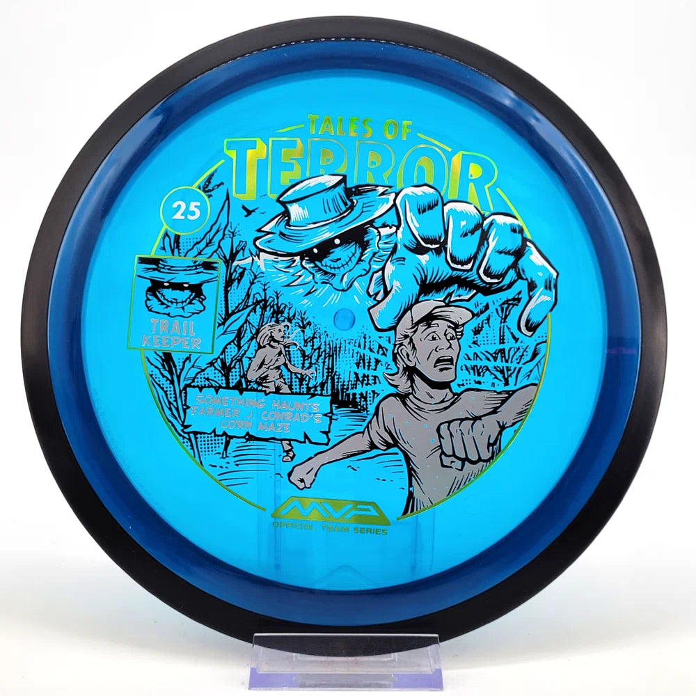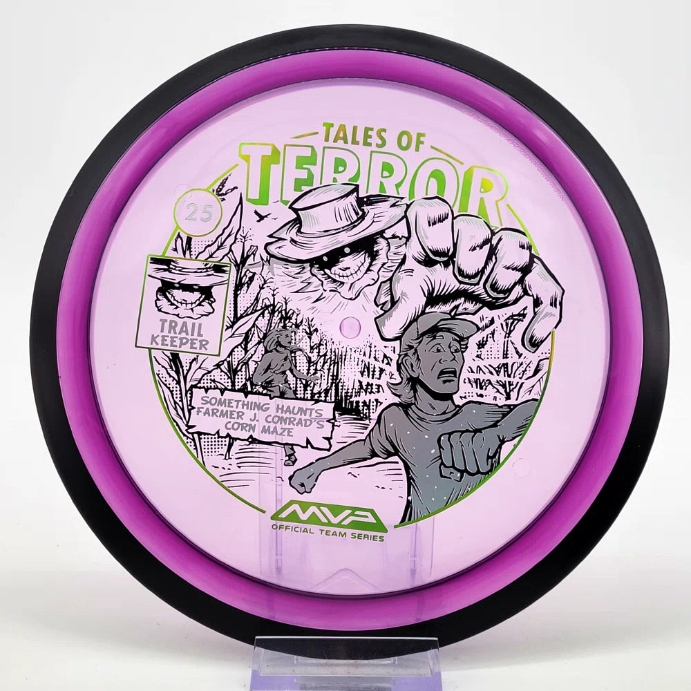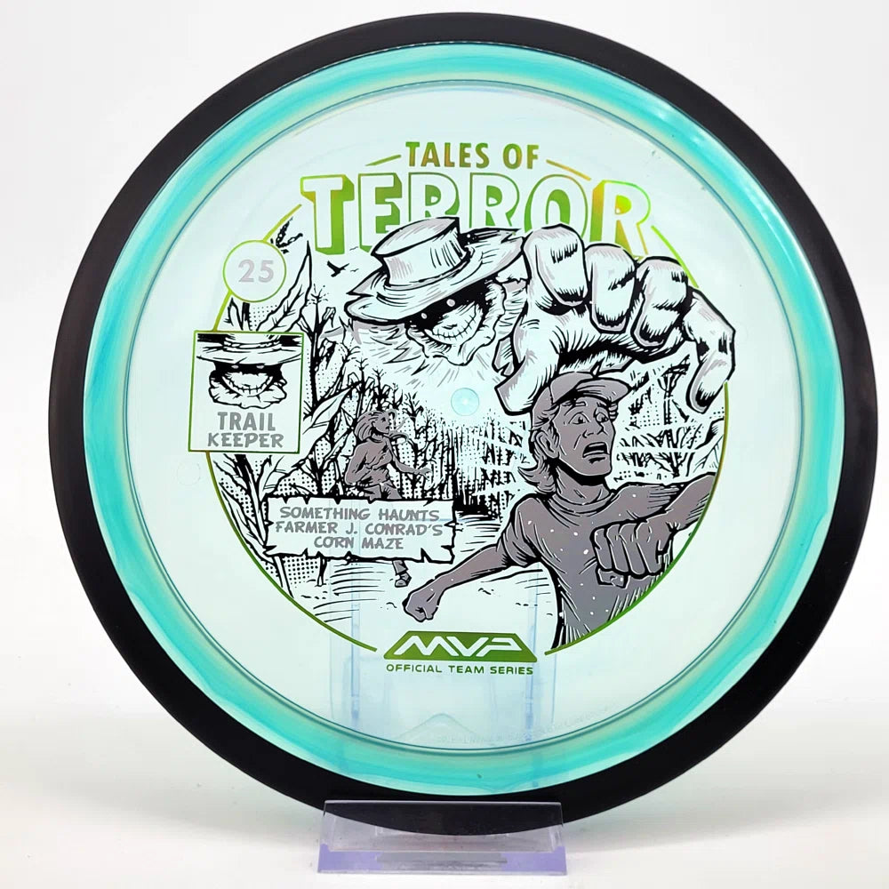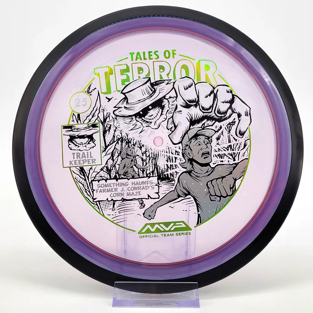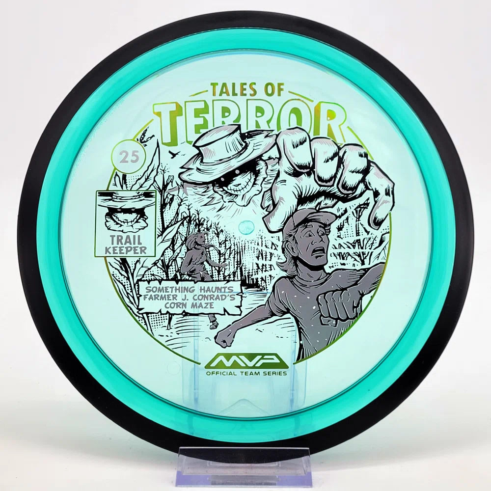 The highly requested fan favorite Proton Trail has returned! Green C Studio adorns this disc with a glimpse of the Trail Keeper haunting Conrad’s Corn Maze, a classic horror story. Excelling in hyzer-flip drives, turnovers, and straight shots, the Trail has become one of the most popular drivers in the MVP lineup that throwers of all power levels will find significant use for.