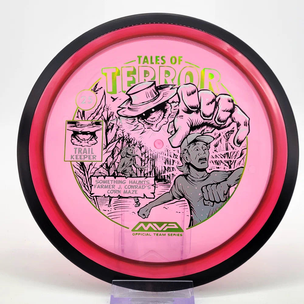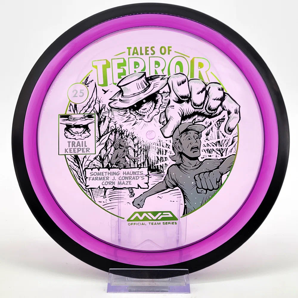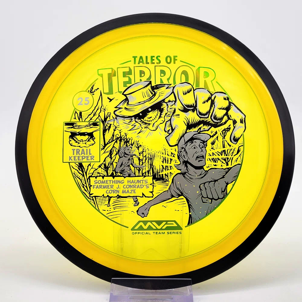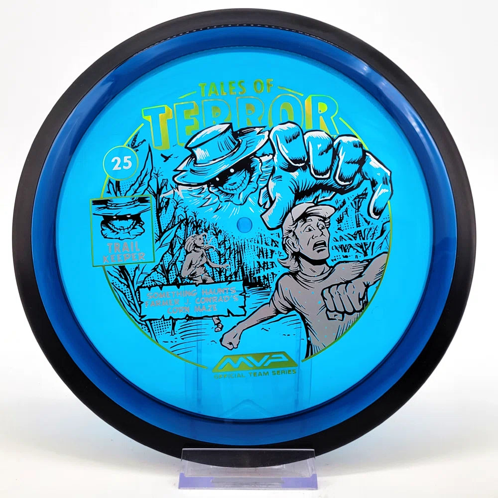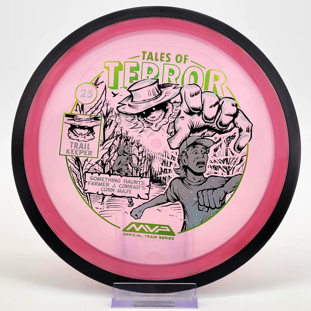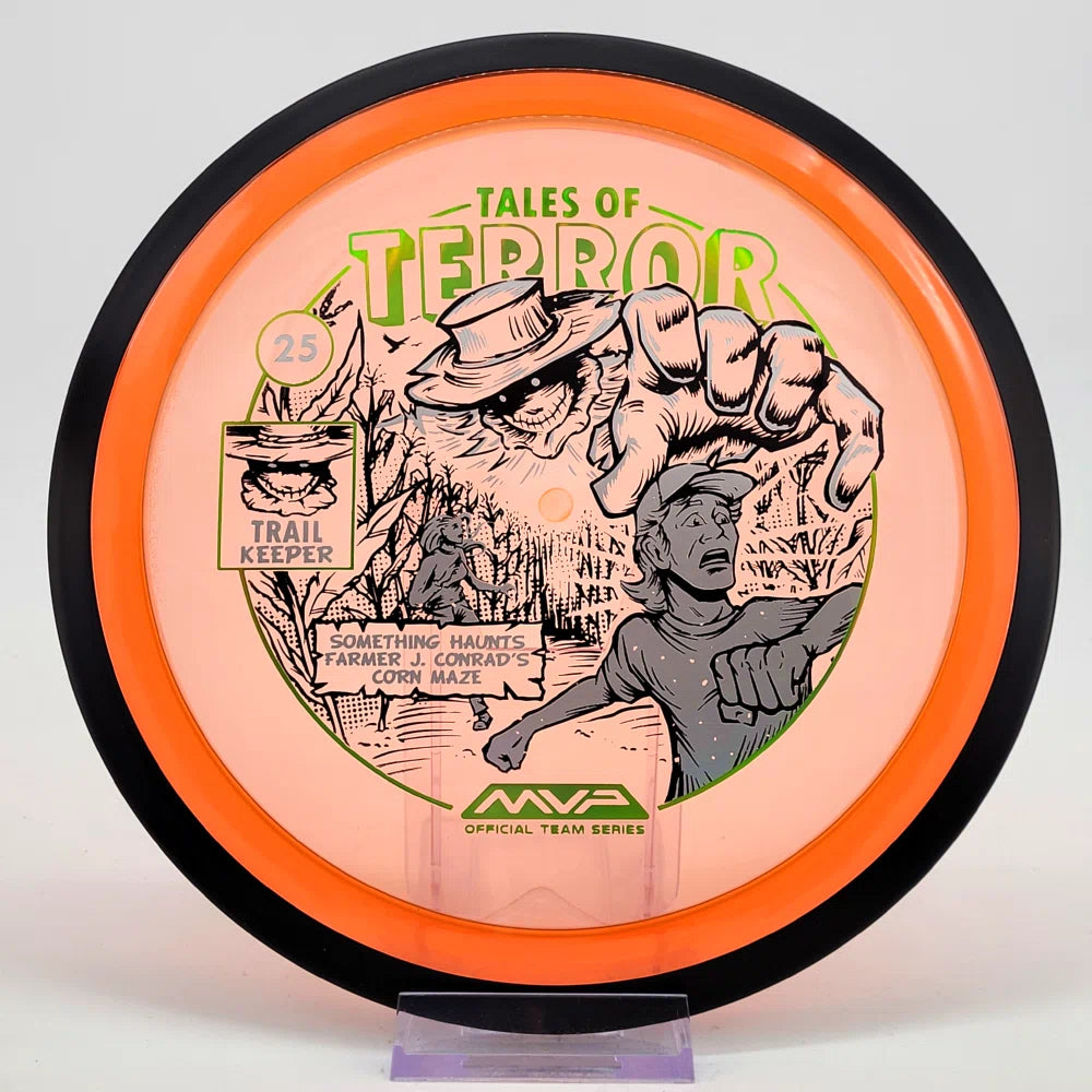 The highly requested fan favorite Proton Trail has returned! Green C Studio adorns this disc with a glimpse of the Trail Keeper haunting Conrad’s Corn Maze, a classic horror story. Excelling in hyzer-flip drives, turnovers, and straight shots, the Trail has become one of the most popular drivers in the MVP lineup that throwers of all power levels will find significant use for.