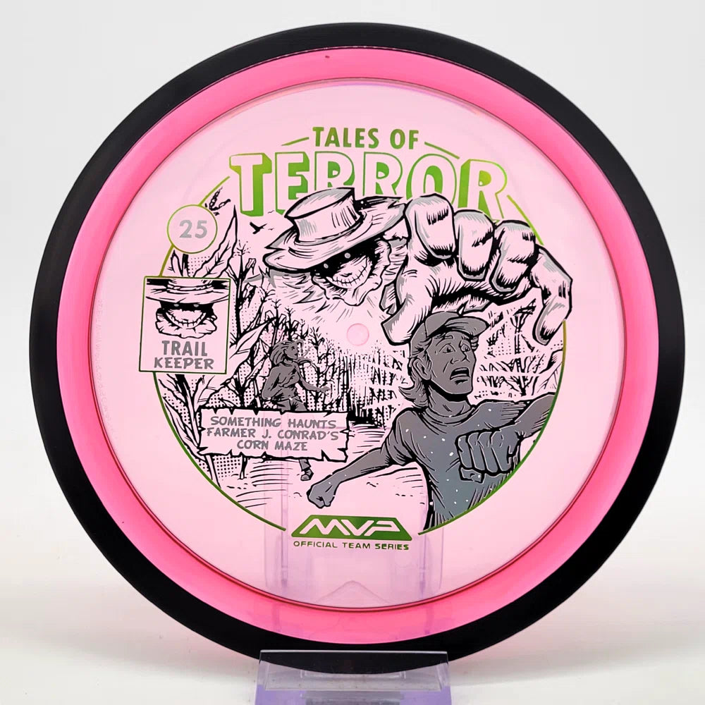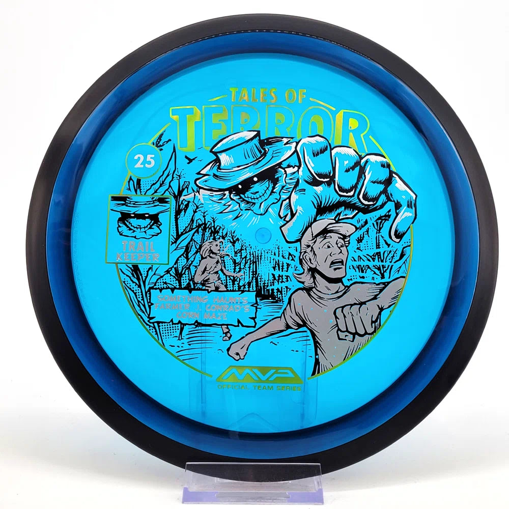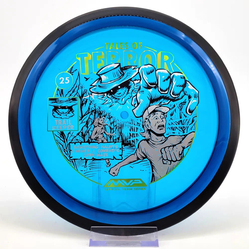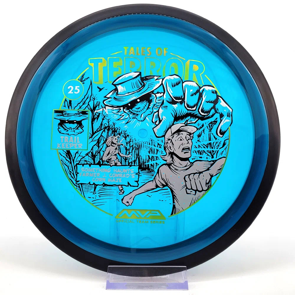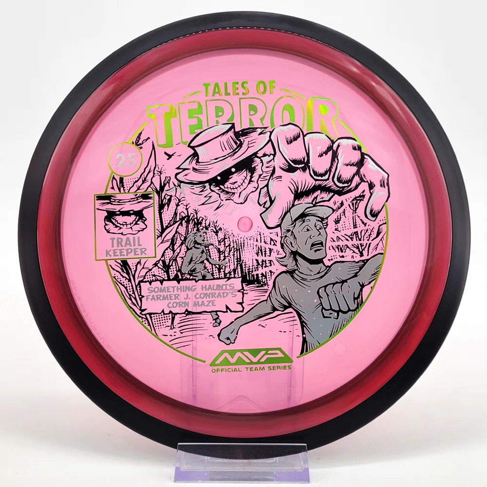 The highly requested fan favorite Proton Trail has returned! Green C Studio adorns this disc with a glimpse of the Trail Keeper haunting Conrad’s Corn Maze, a classic horror story. Excelling in hyzer-flip drives, turnovers, and straight shots, the Trail has become one of the most popular drivers in the MVP lineup that throwers of all power levels will find significant use for.