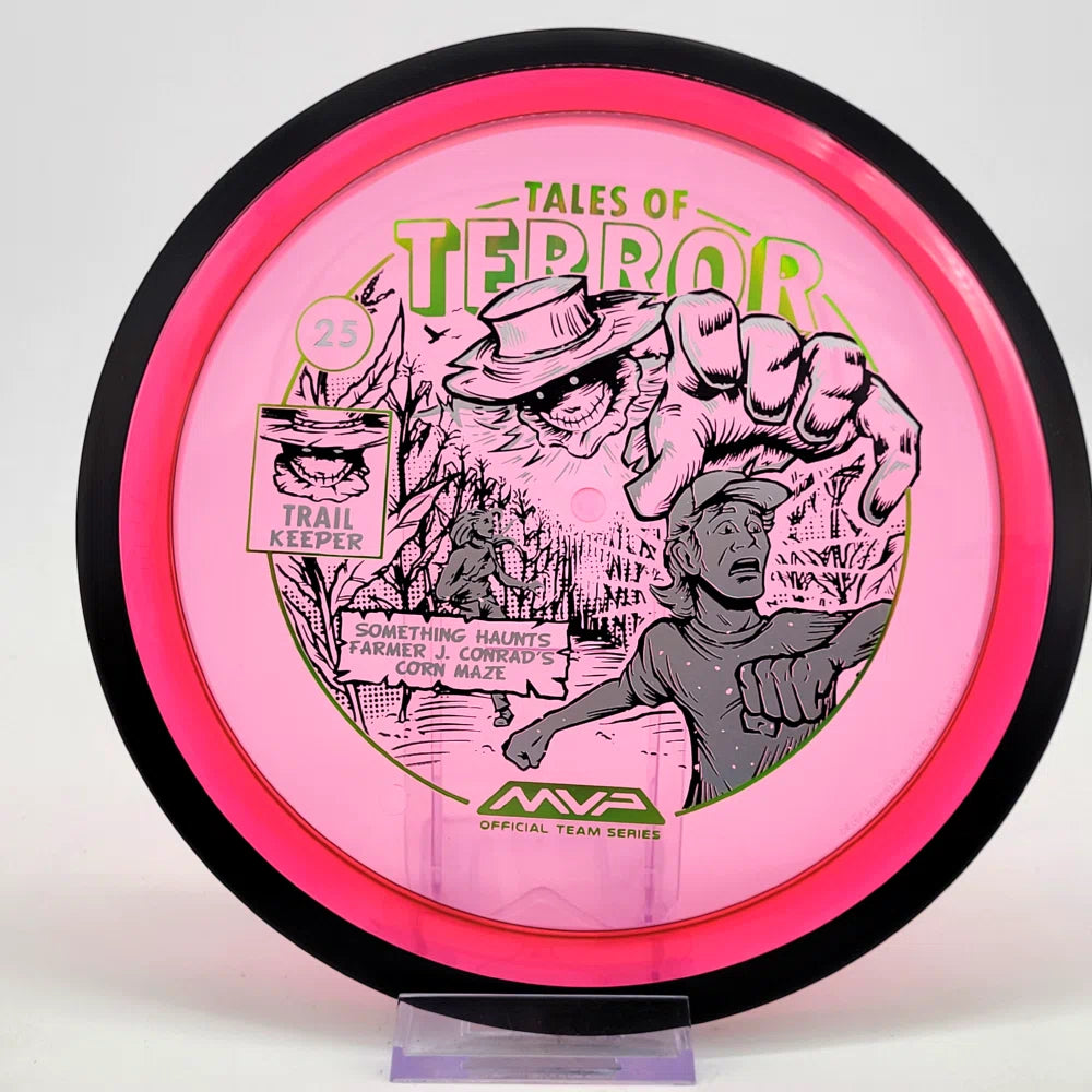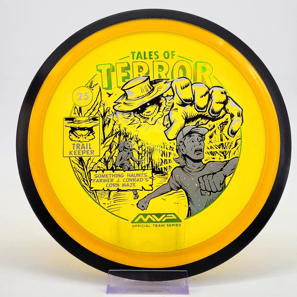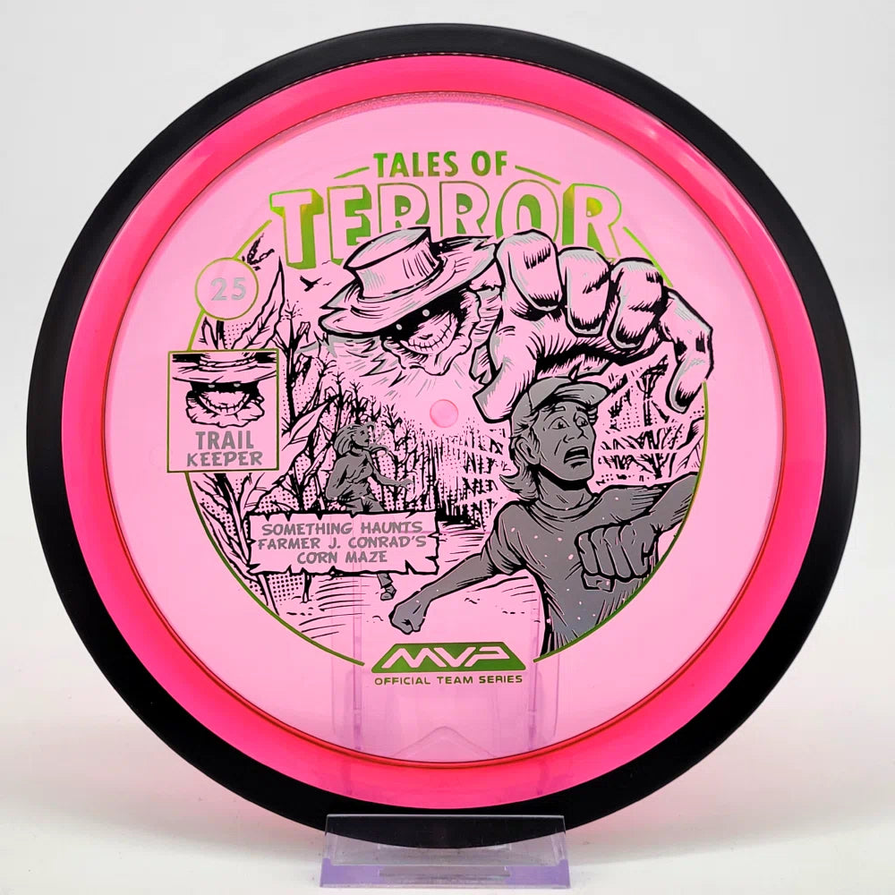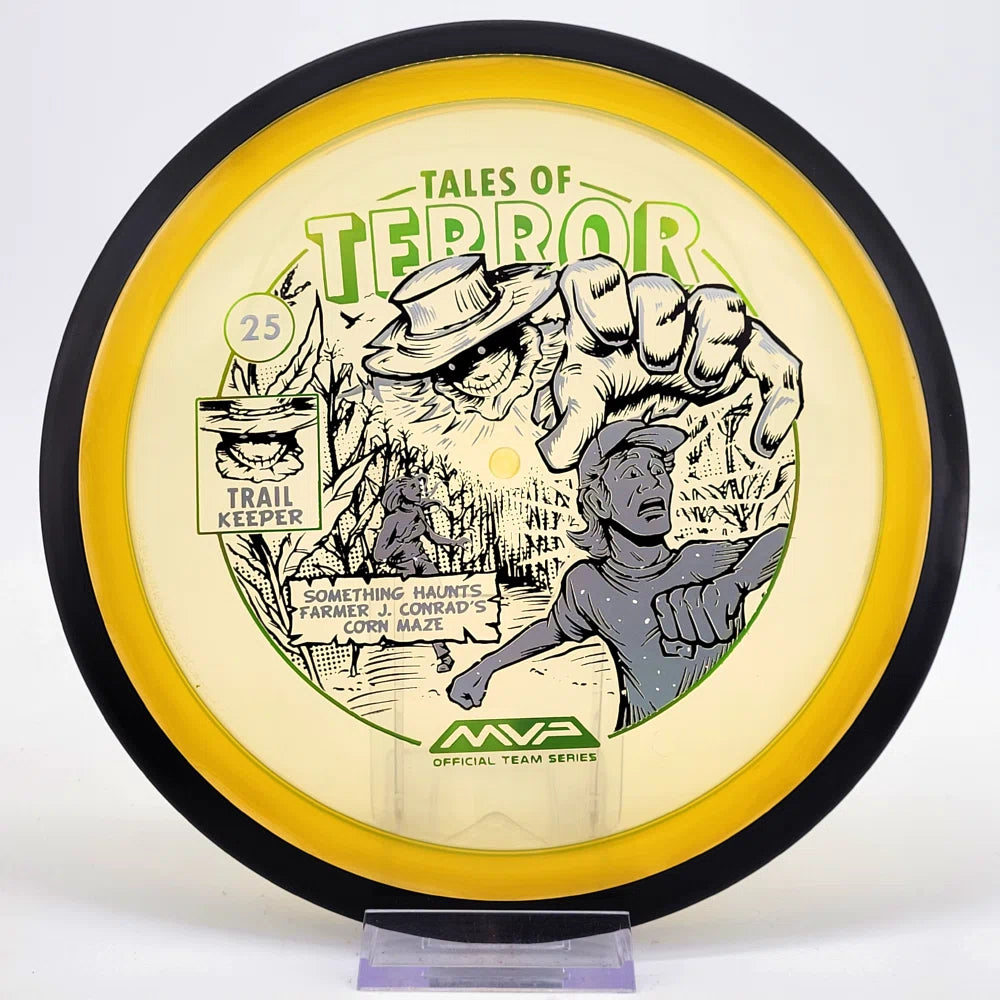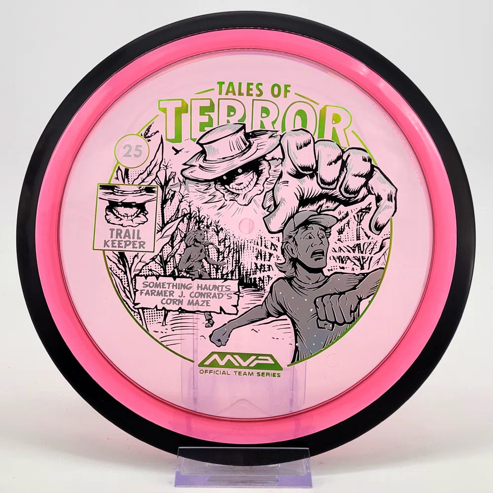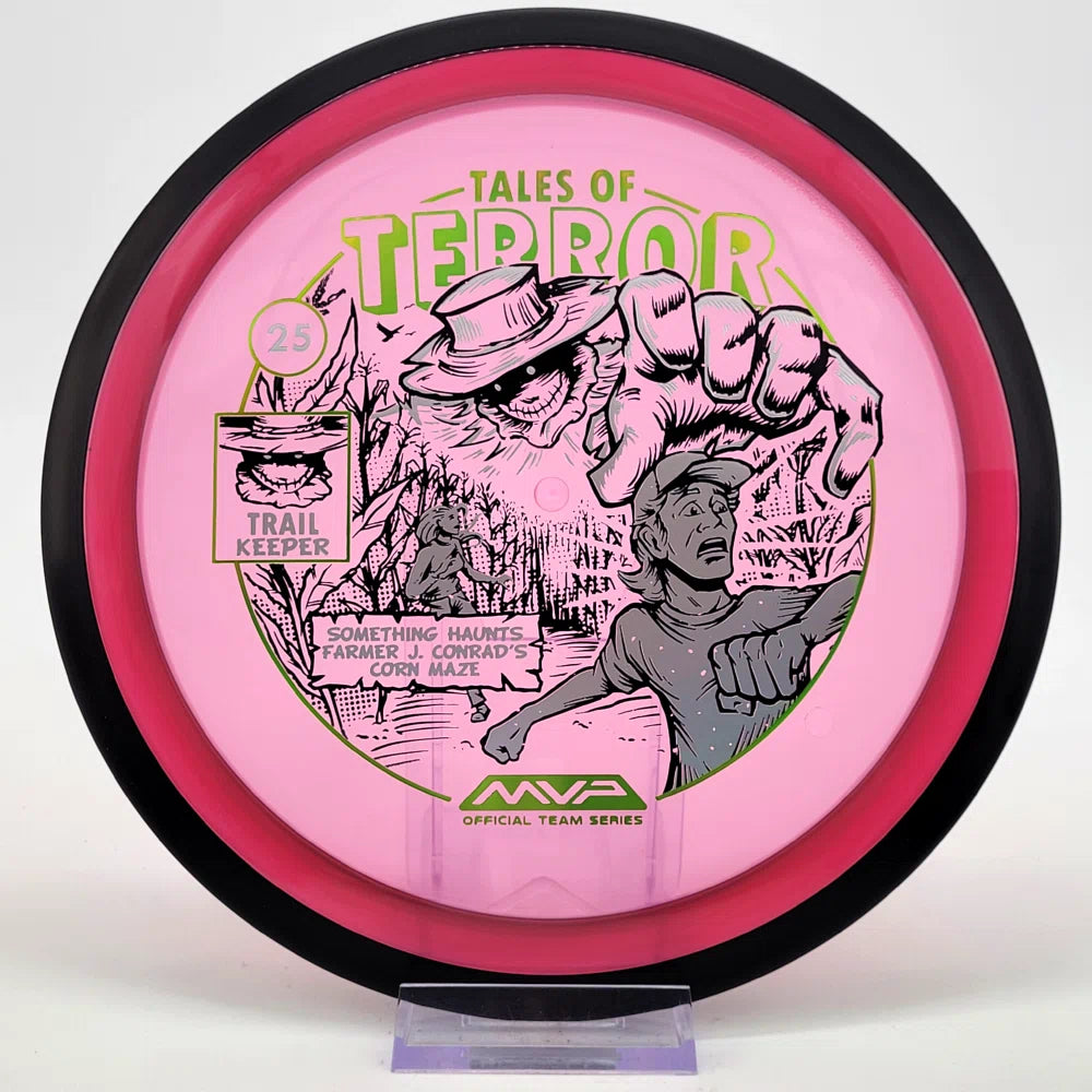The highly requested fan favorite Proton Trail has returned! Green C Studio adorns this disc with a glimpse of the Trail Keeper haunting Conrad’s Corn Maze, a classic horror story. Excelling in hyzer-flip drives, turnovers, and straight shots, the Trail has become one of the most popular drivers in the MVP lineup that throwers of all power levels will find significant use for.