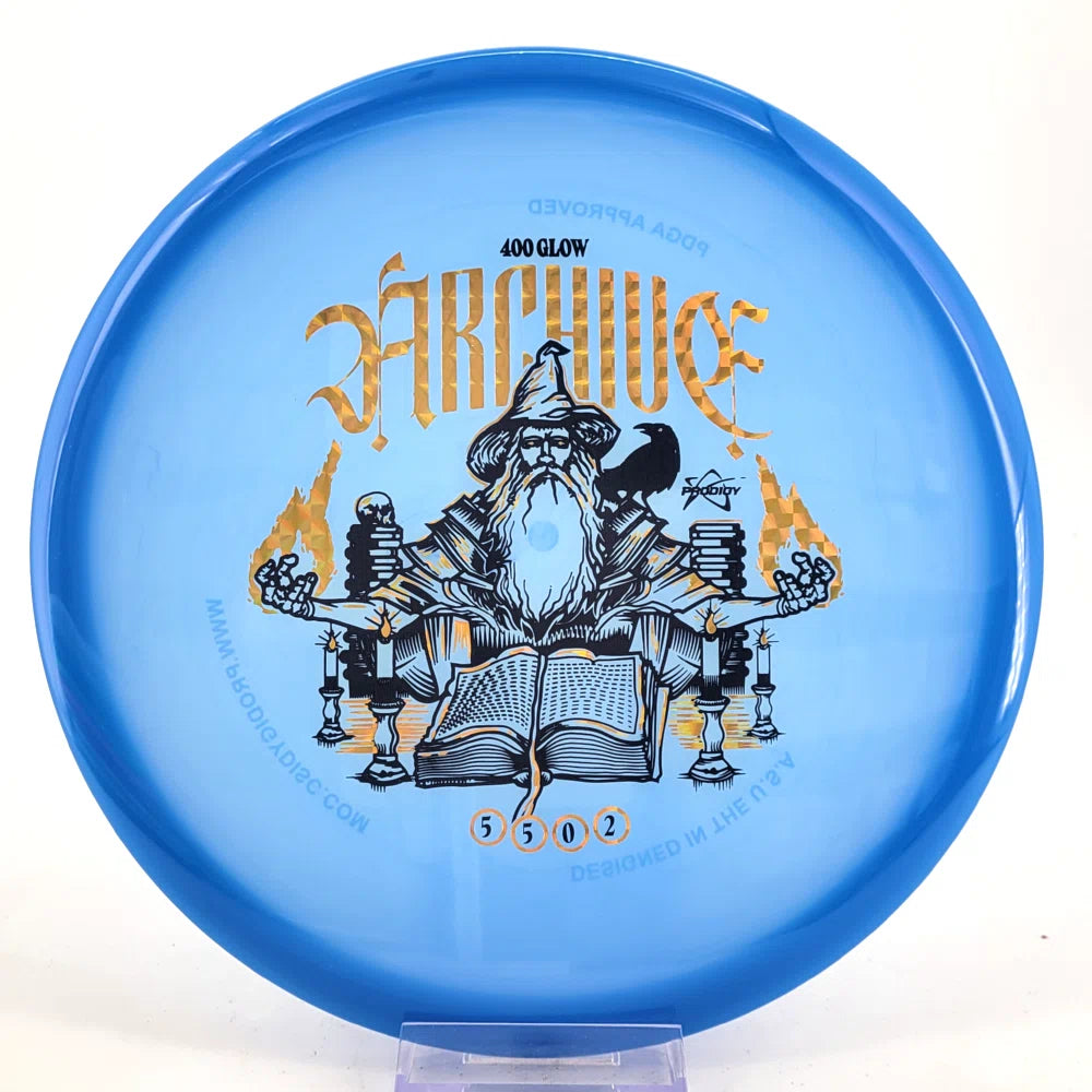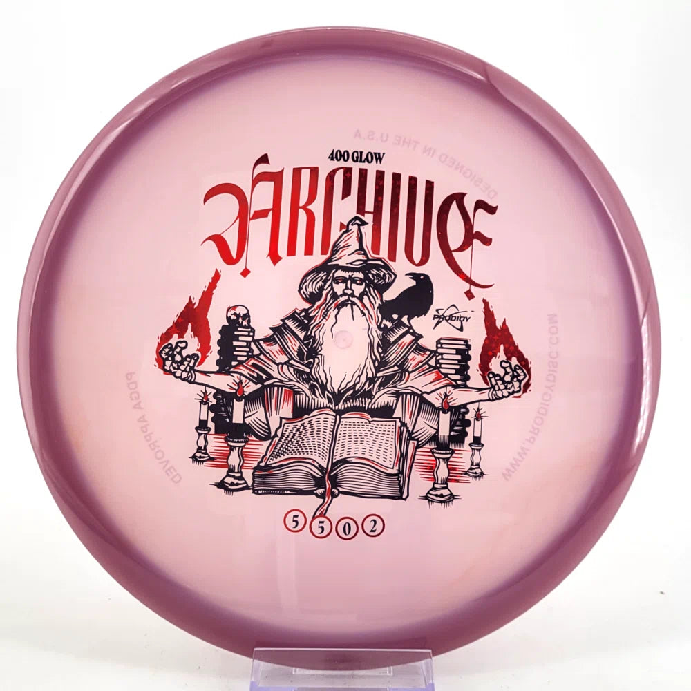 Forged from the fire of champions and entrusted with the power to shape the very fabric of flight, the Archive midrange is a beadless midrange that soars effortlessly through the sky with enhanced glide, and a touch of overstability to give it unwavering accuracy and a steadfast resistance to swirling winds. The Archive occupies a place in the Prodigy Disc midrange lineup between the M1 and M2. This disc was originally developed as part of the Prodigy Collabs Series.