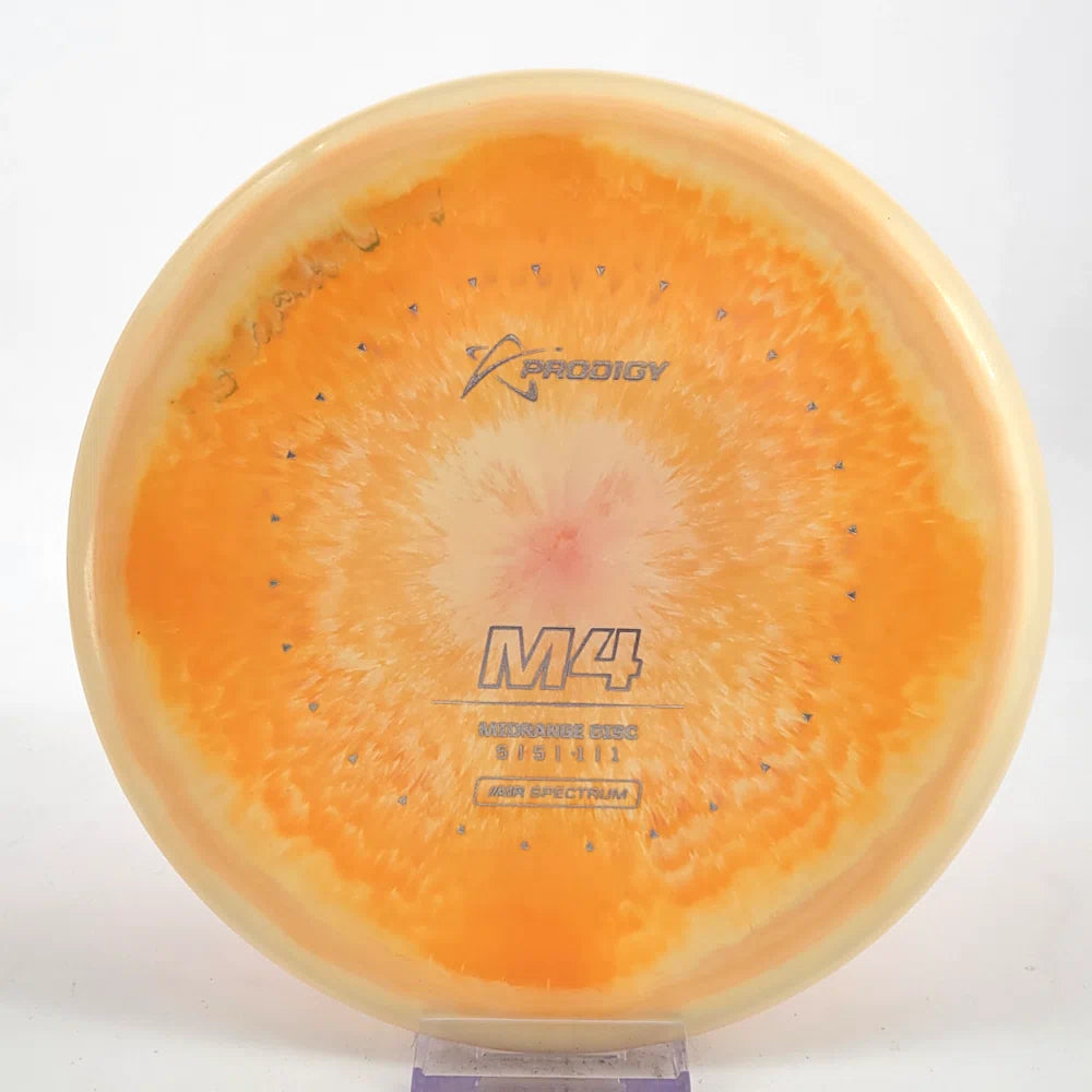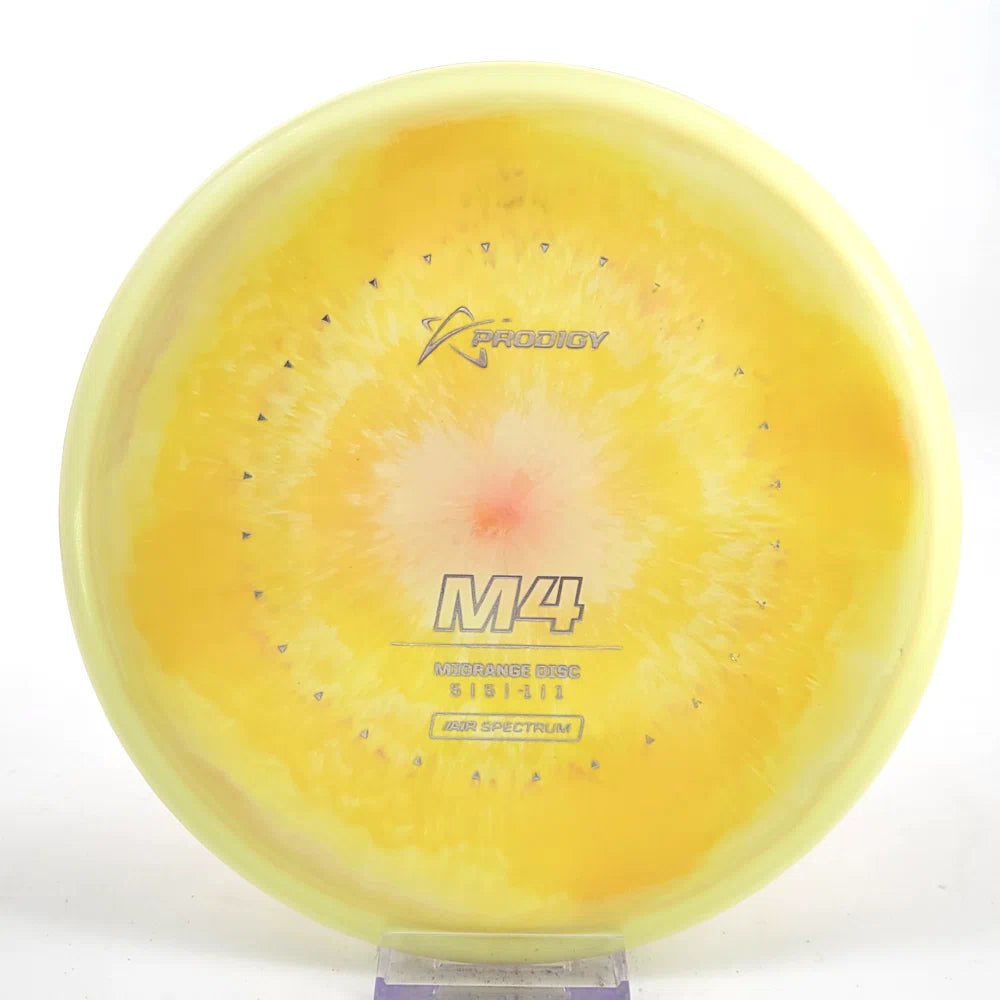 The Prodigy Disc M4 is an extremely reliable understable midrange disc. It is designed for all players and flies extremely far for a midrange. The M4 will turn up when thrown hard and will then have an extra long glide and a soft straight finish.