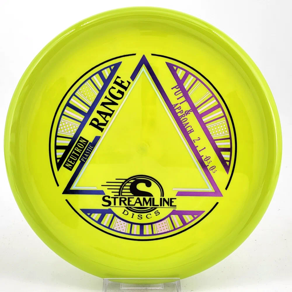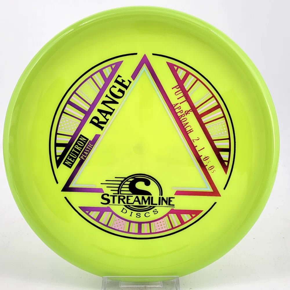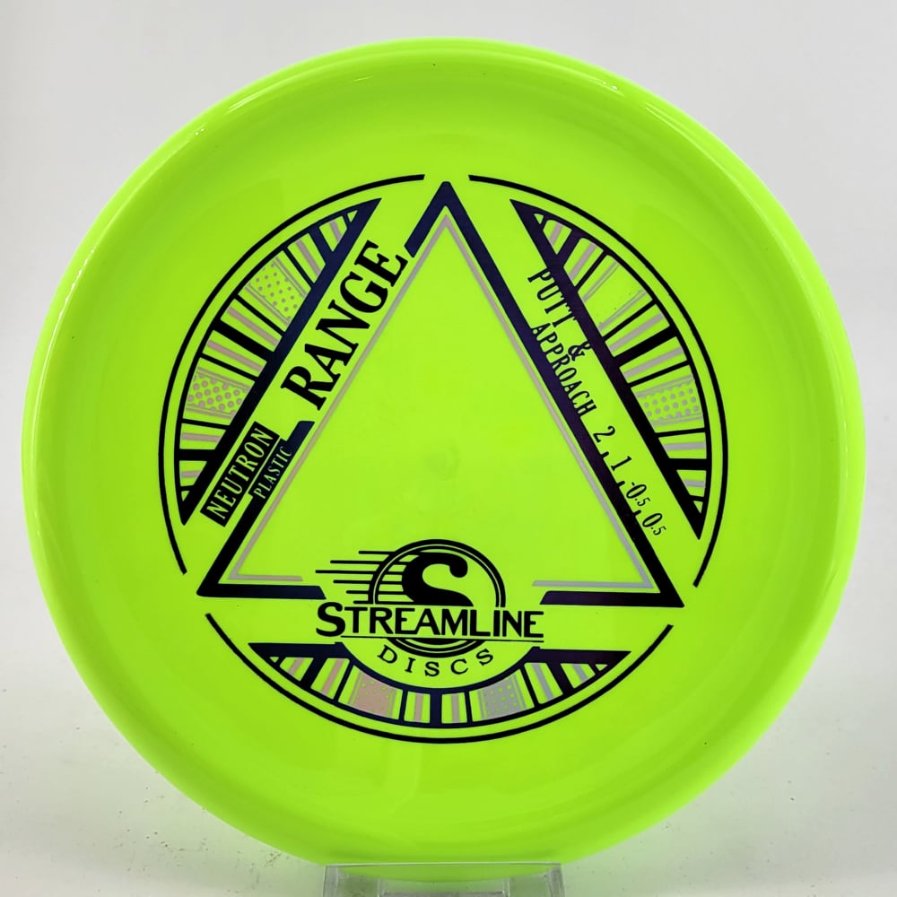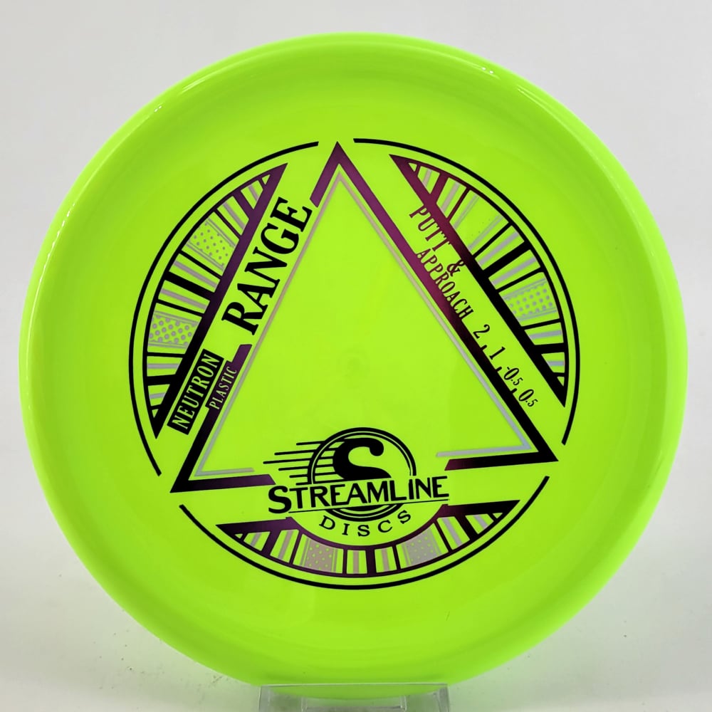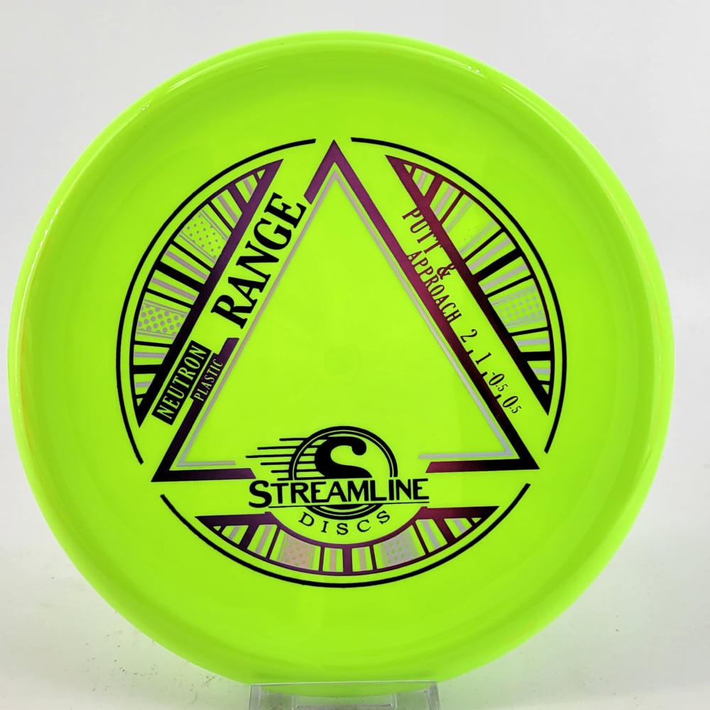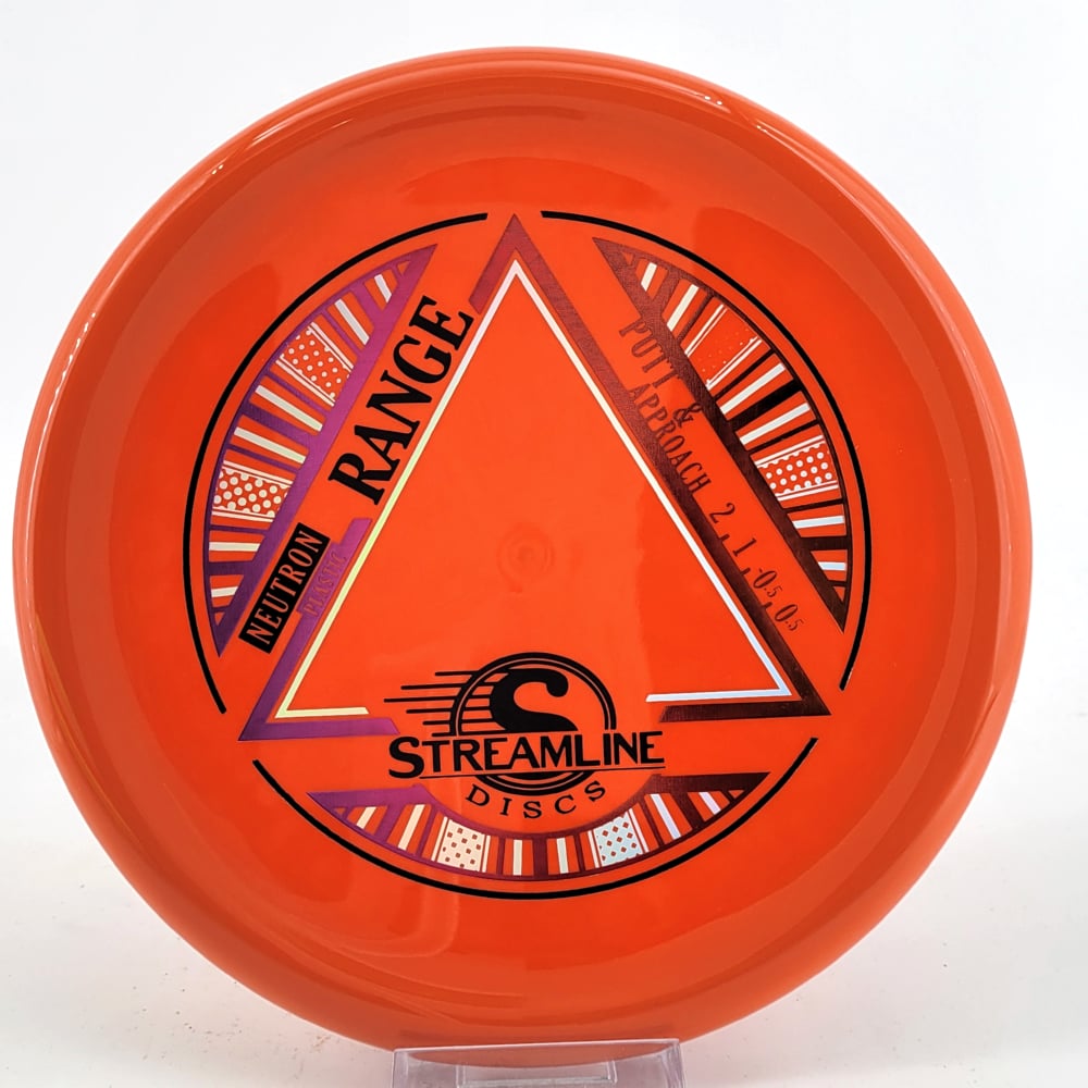 The Range has officially joined our stock catalog! Releasing with flight numbers of 2 | 1 | -0.5 | 0.5, the Range makes its stock debut in Neutron plastic - ensuring a reliable, long-lasting approach disc for any time of the year. Designed with torque resistance and low glide in mind, the Range is a straight-flyer with subtle but reliable fade. Pairing that straight flight with dramatically reduced glide - thanks to its unique shape - the Range is an extremely reliable approach disc for when ranging distance is at a premium. Try the Neutron Range for yourself and discover true utility!