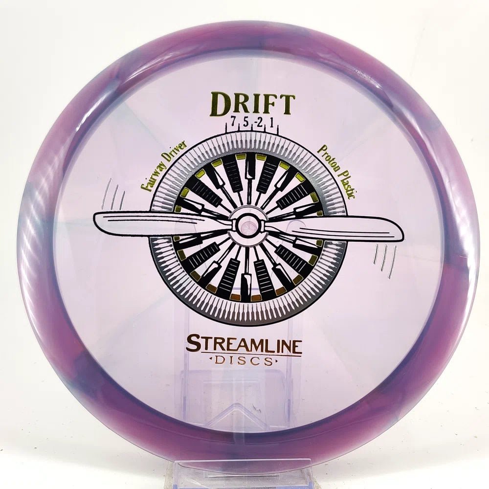 The Drift is a stable-understable fairway driver. The Drift is designed for laser straight lines ending with a gentle fade and an exceptional amount of glide, providing easy distance with this highly versatile driver. The Drift has a modest rim size, a slightly domed profile, and an easily activated turn for hyzer-flips or big turnover shots. The Drift will make its grand debut in Neutron Plastic, pairing perfectly with its bright opaque colors, durability, and grip. This Speed 7 driver is the first fairway driver in the Streamline fleet and continues the trend of stunning triple-foil stock stamps.