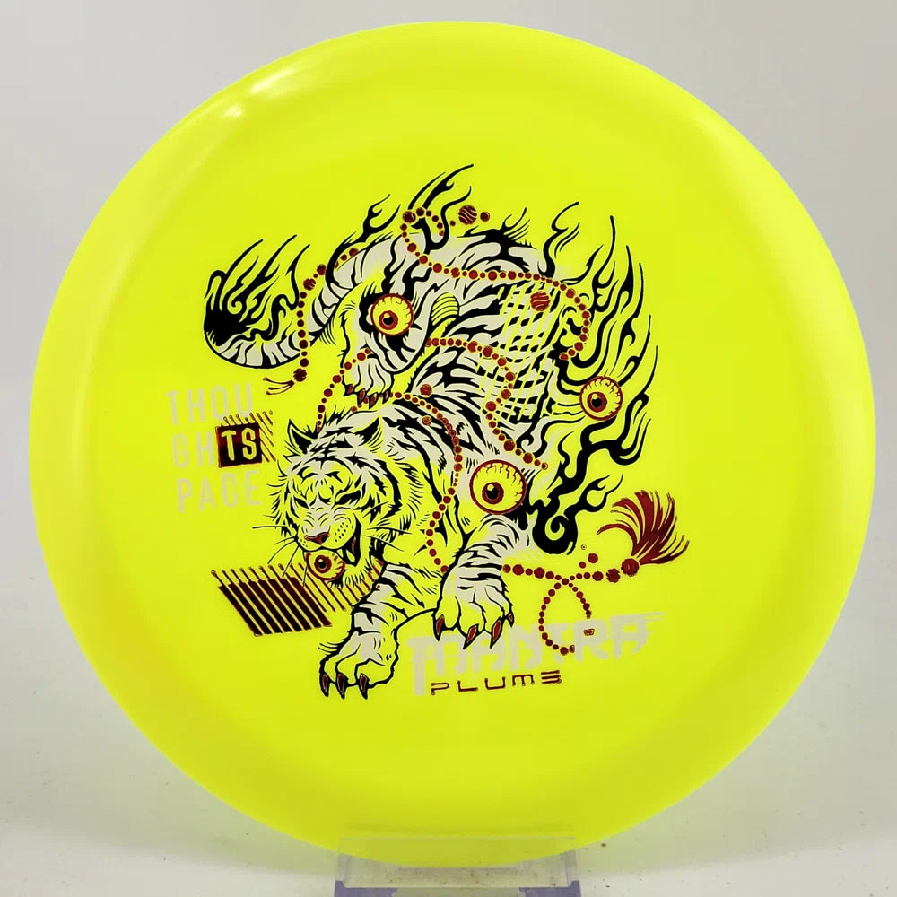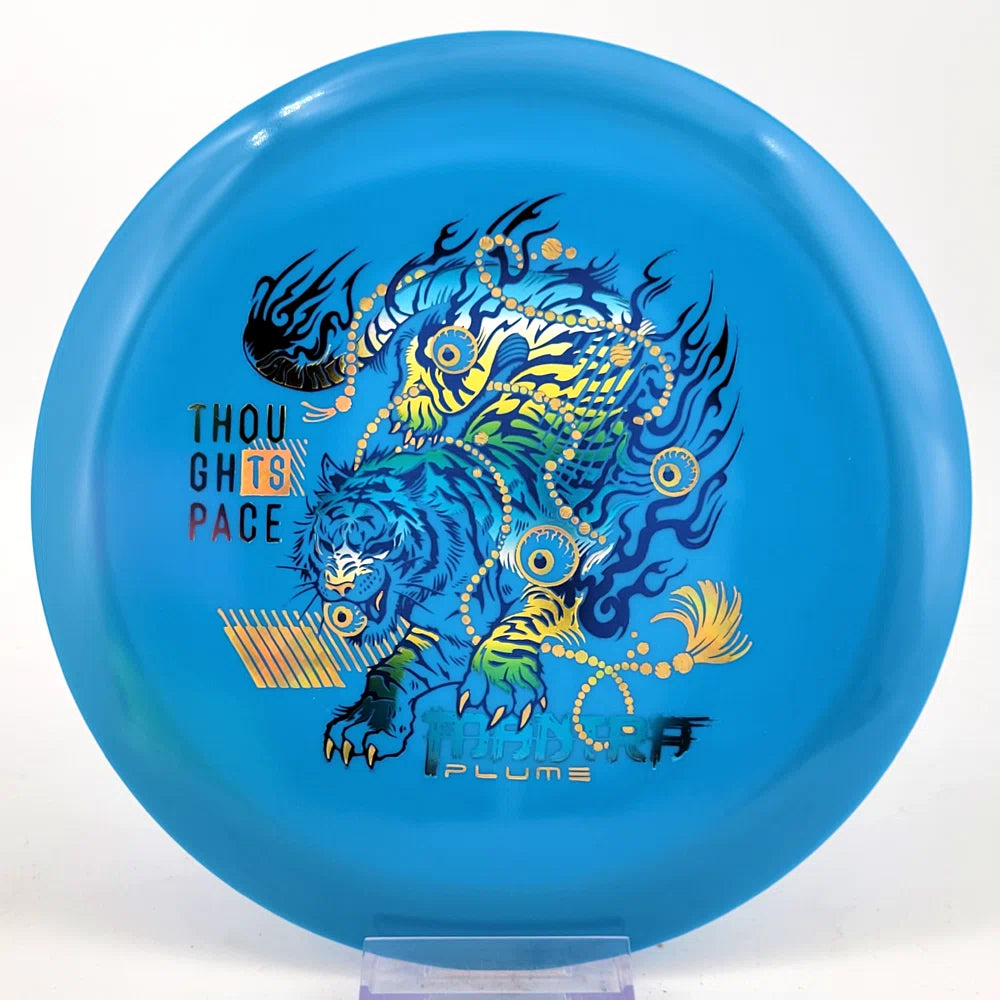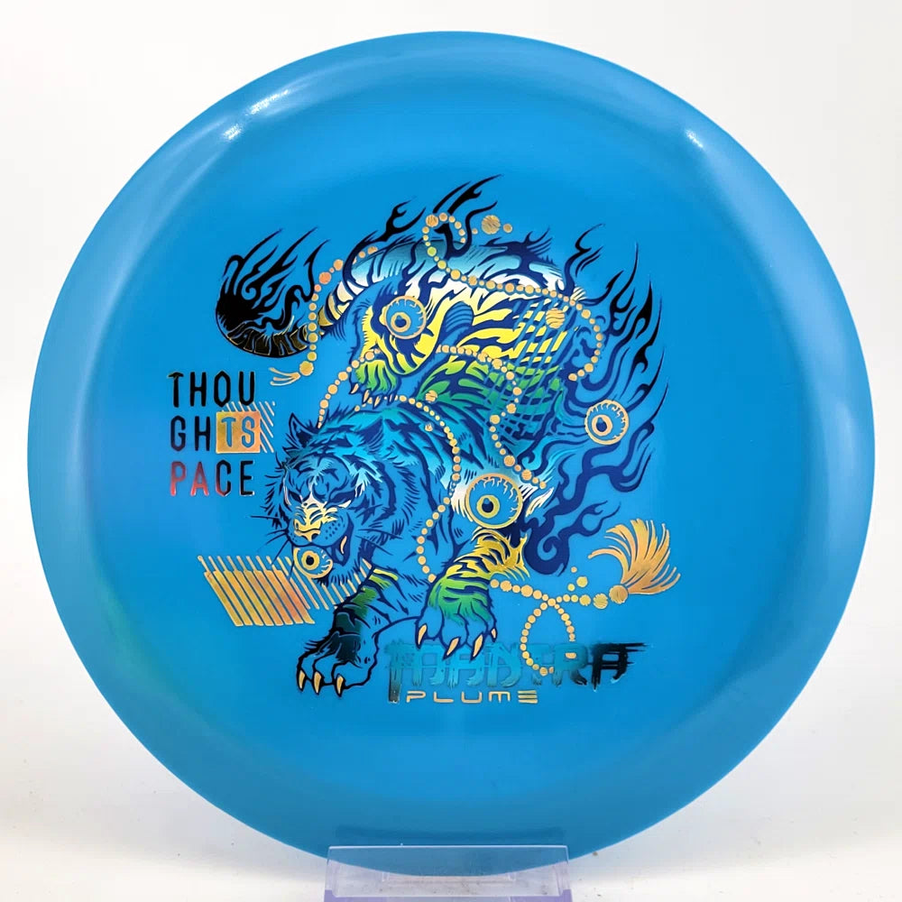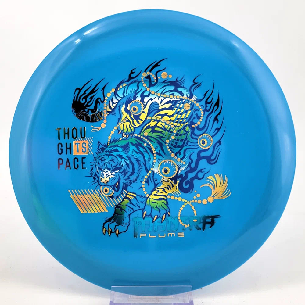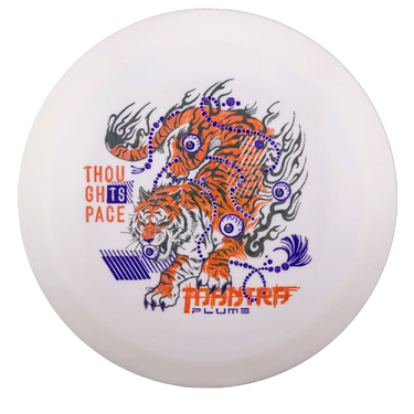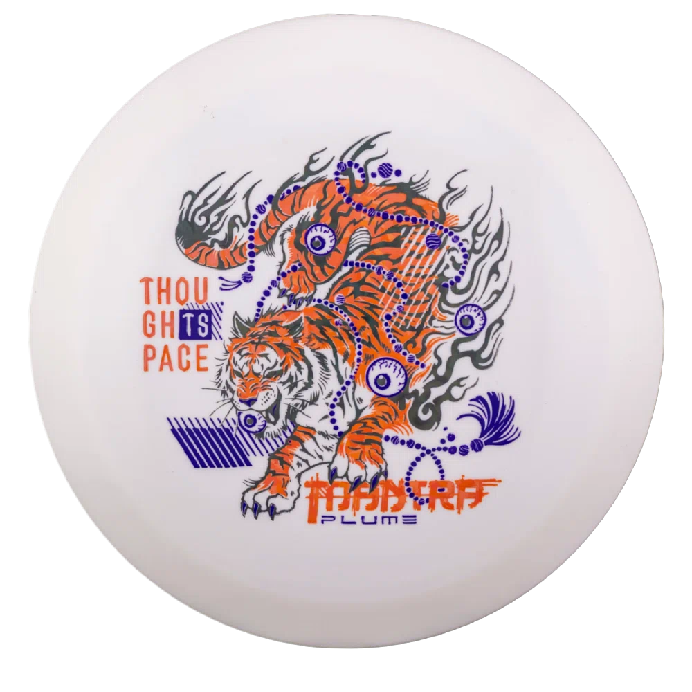 About the plastic: Plume Plastic introduces an ultralight blend that integrates microbubbles throughout the disc for evenly distributed weight reduction. The result is a disc that launches with less effort, maintains surprising stability, and glides with intention. Comparable in feel to MVP’s Fission plastic, Plume provides that same high-performance lightness with the unmistakable TSA touch — detailed, durable, and visually striking.