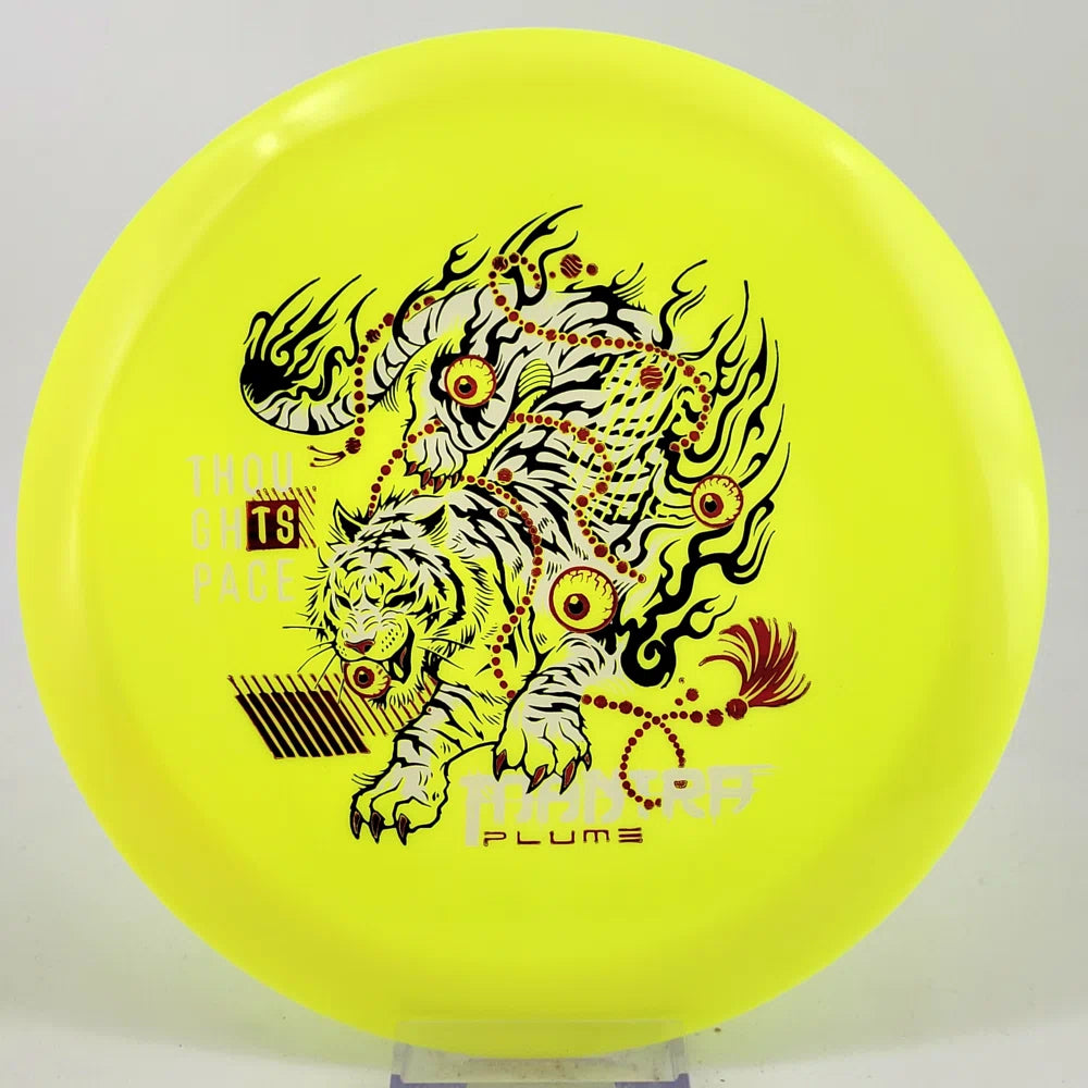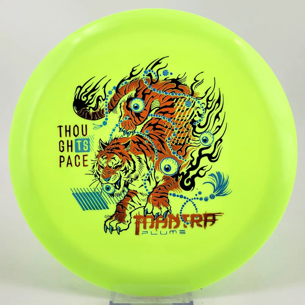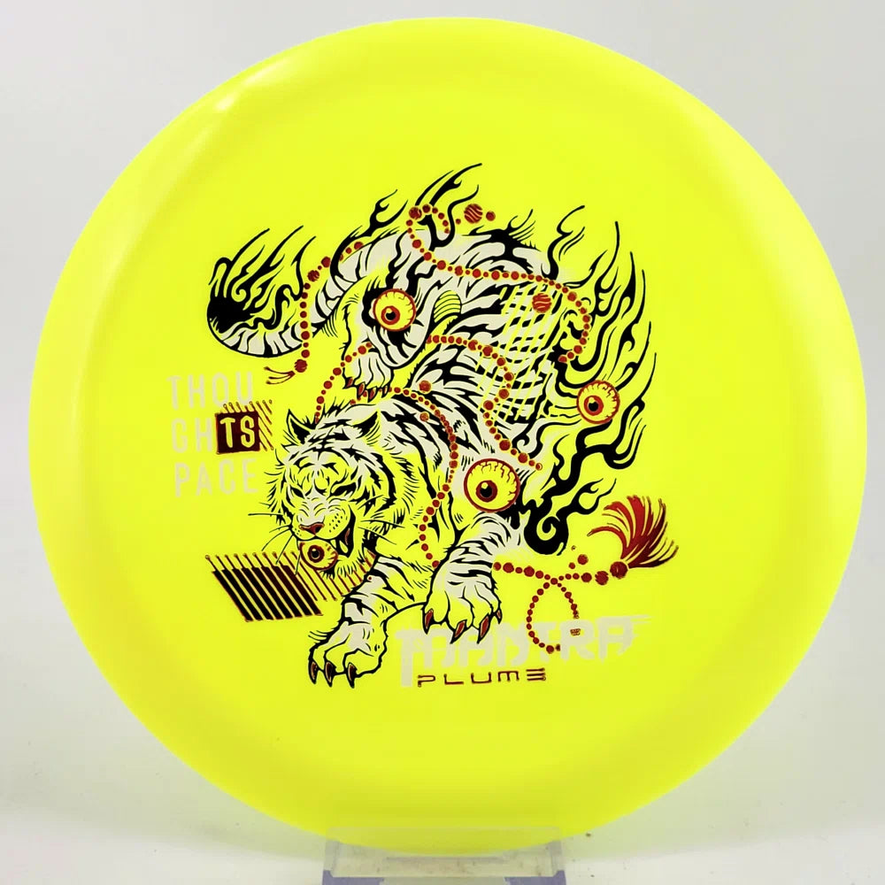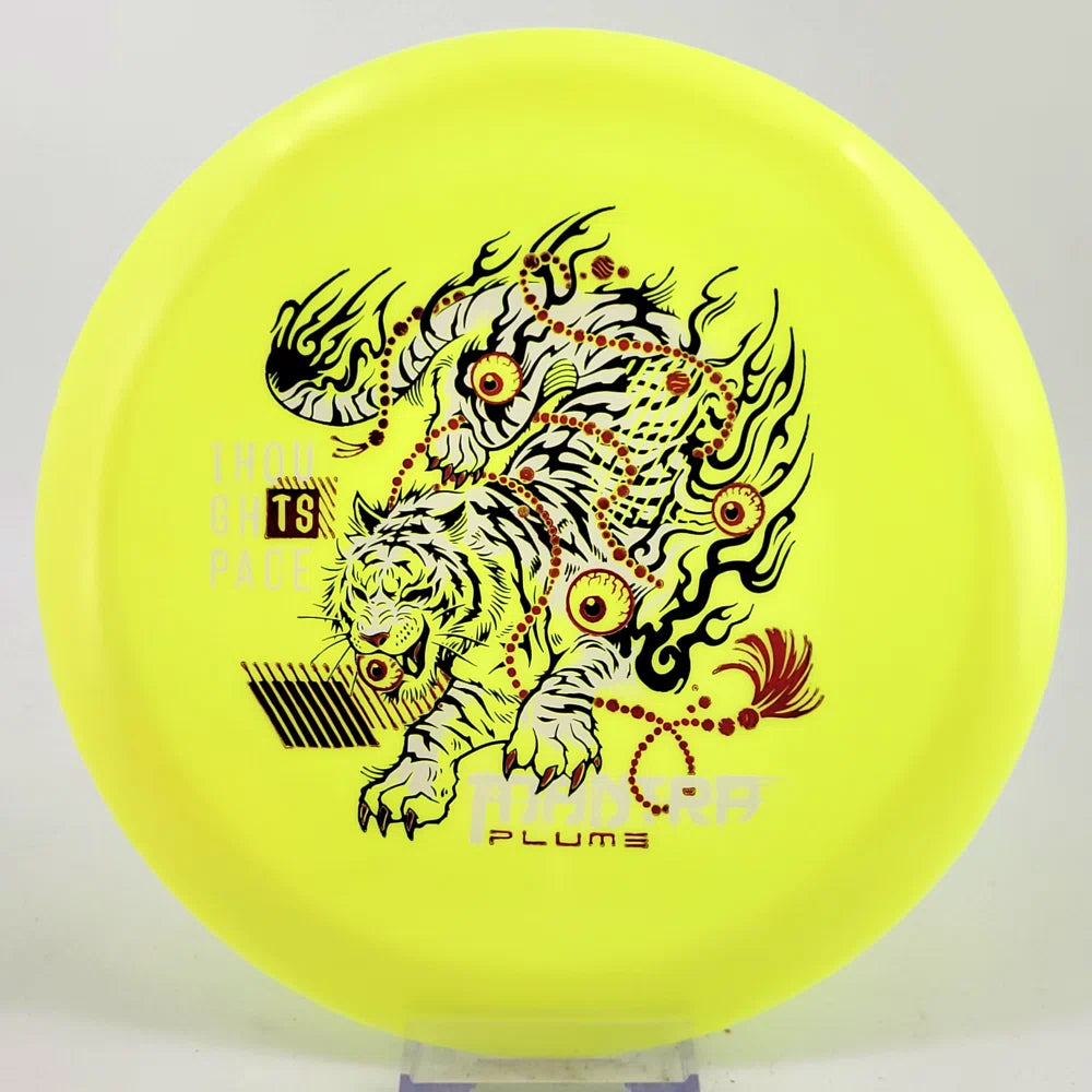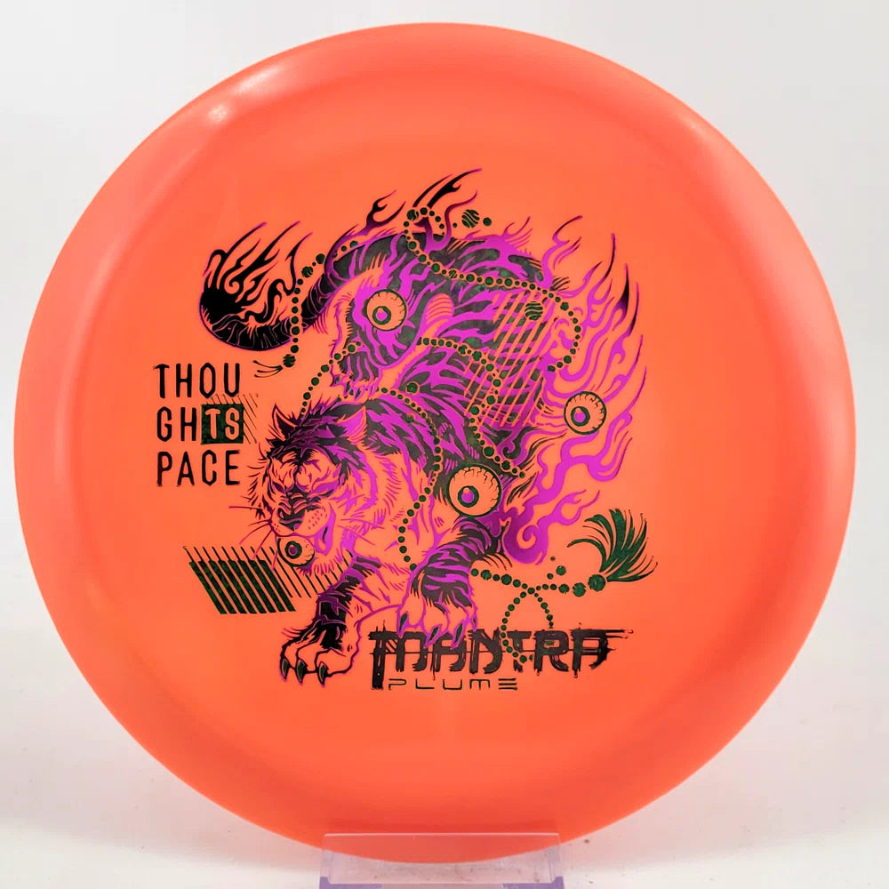 About the plastic: Plume Plastic introduces an ultralight blend that integrates microbubbles throughout the disc for evenly distributed weight reduction. The result is a disc that launches with less effort, maintains surprising stability, and glides with intention. Comparable in feel to MVP’s Fission plastic, Plume provides that same high-performance lightness with the unmistakable TSA touch — detailed, durable, and visually striking.
