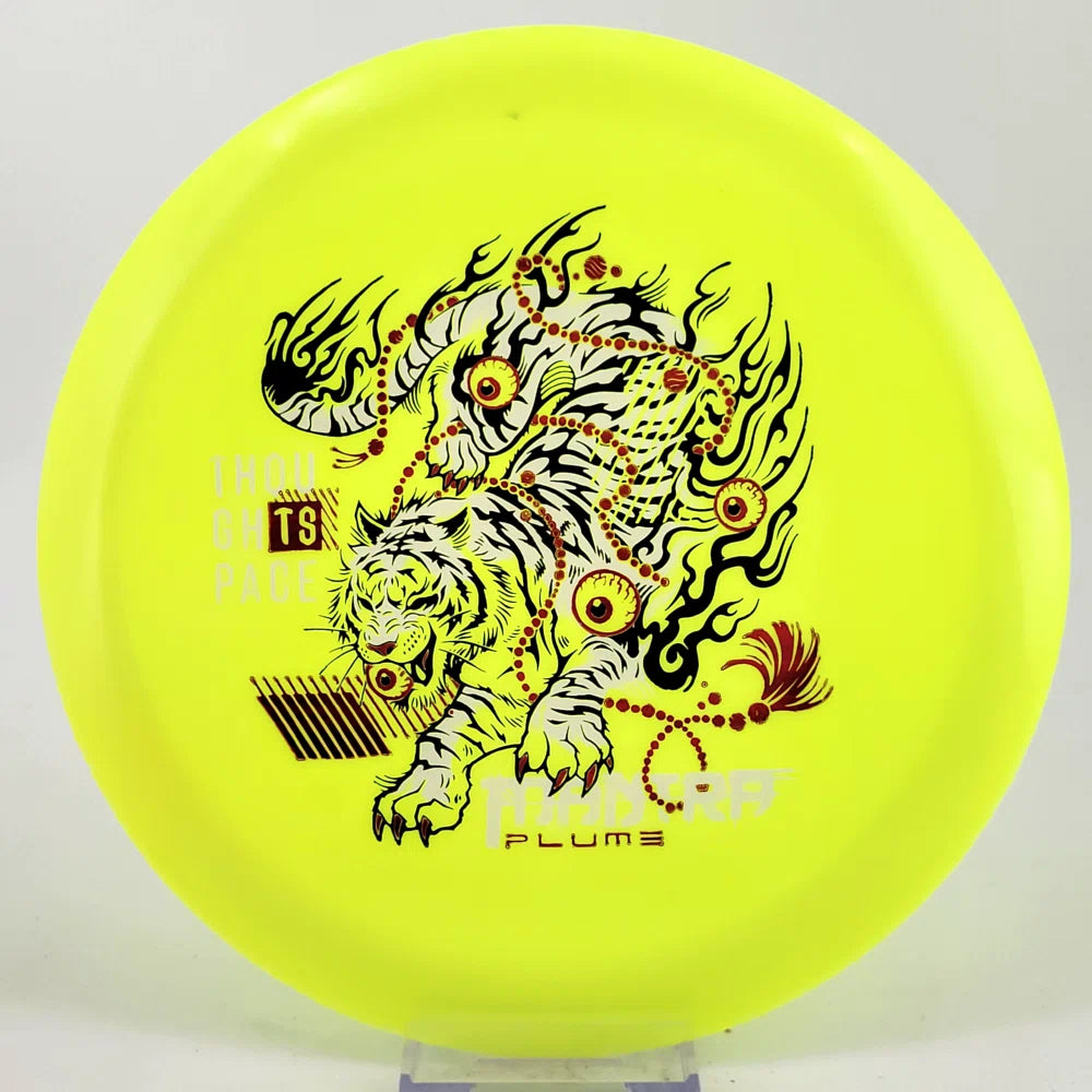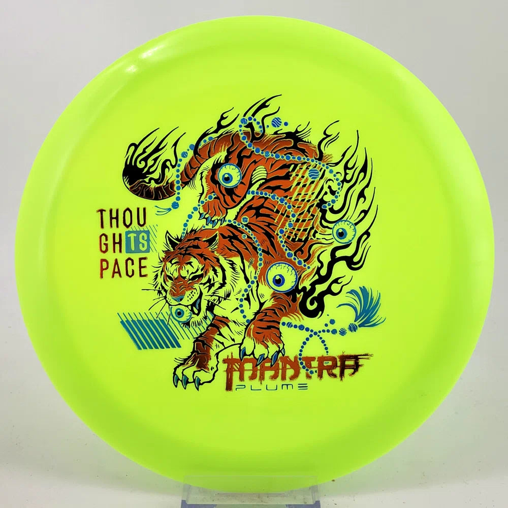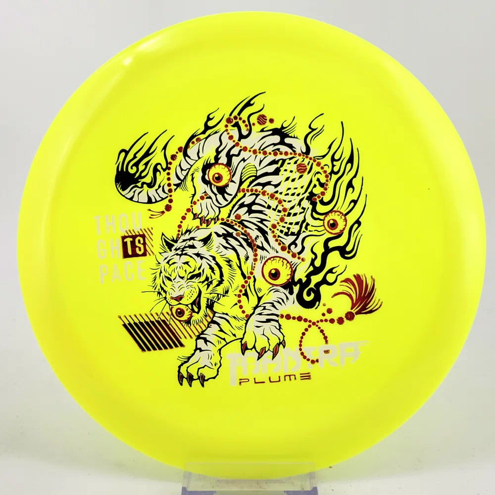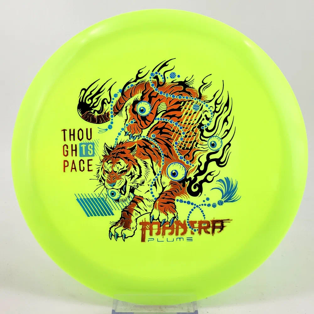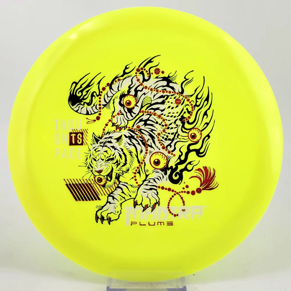 About the plastic: Plume Plastic introduces an ultralight blend that integrates microbubbles throughout the disc for evenly distributed weight reduction. The result is a disc that launches with less effort, maintains surprising stability, and glides with intention. Comparable in feel to MVP’s Fission plastic, Plume provides that same high-performance lightness with the unmistakable TSA touch — detailed, durable, and visually striking.