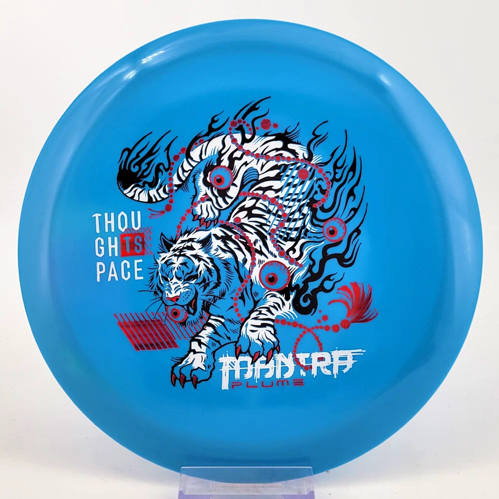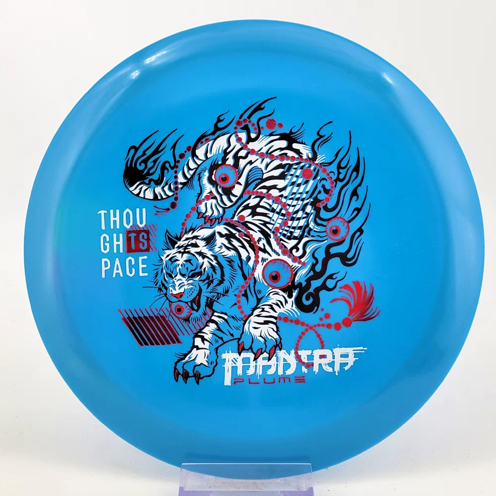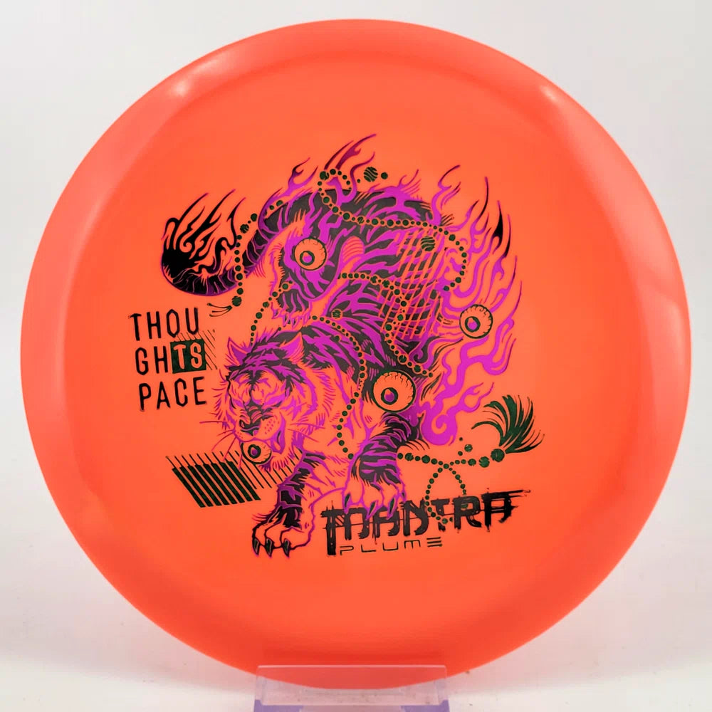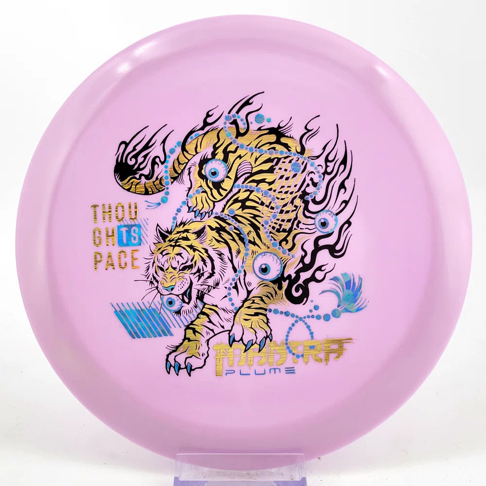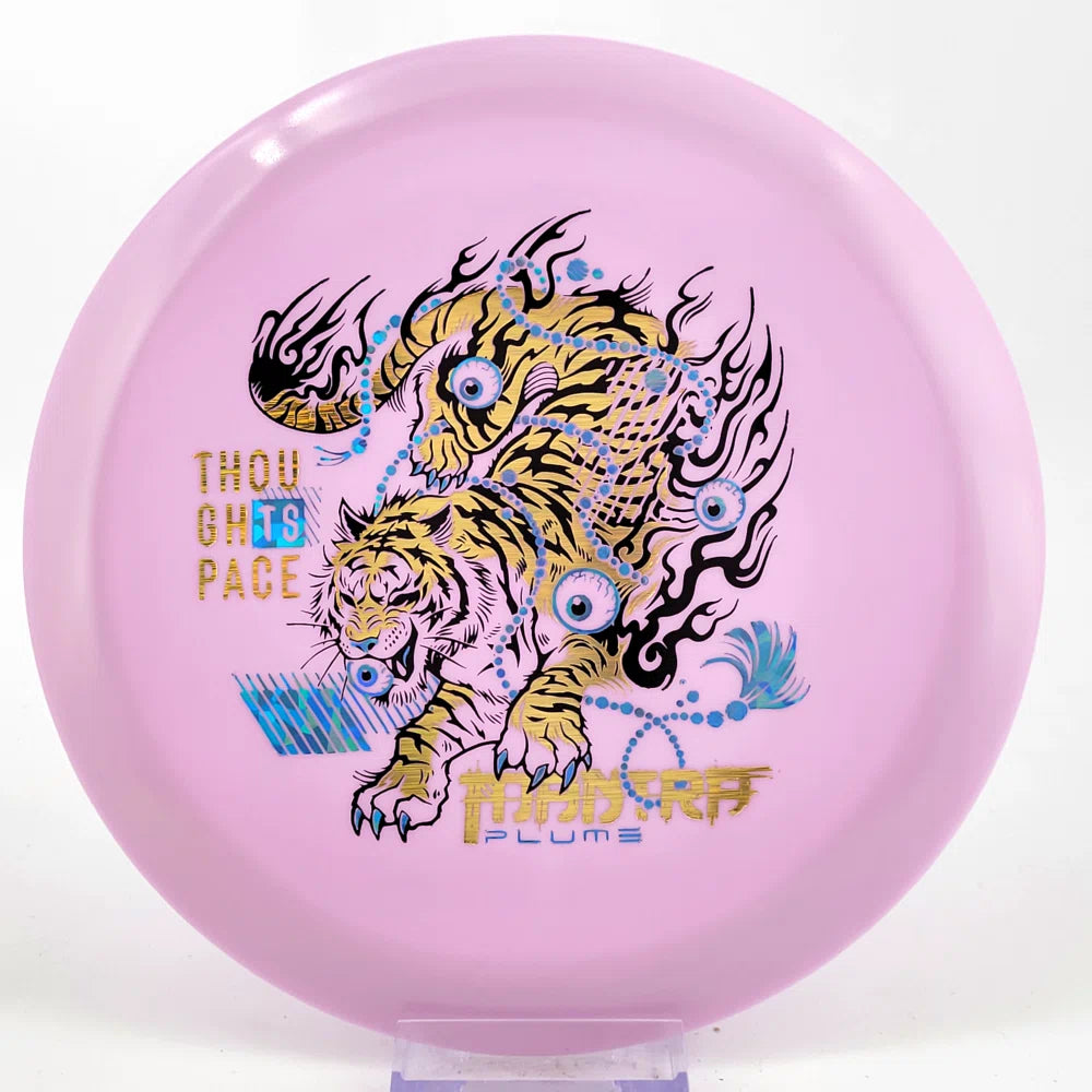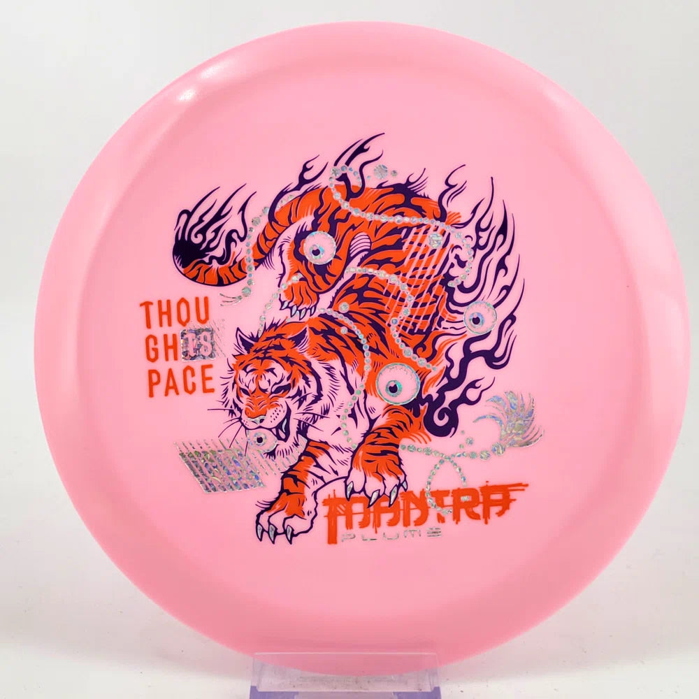 About the plastic: Plume Plastic introduces an ultralight blend that integrates microbubbles throughout the disc for evenly distributed weight reduction. The result is a disc that launches with less effort, maintains surprising stability, and glides with intention. Comparable in feel to MVP’s Fission plastic, Plume provides that same high-performance lightness with the unmistakable TSA touch — detailed, durable, and visually striking.