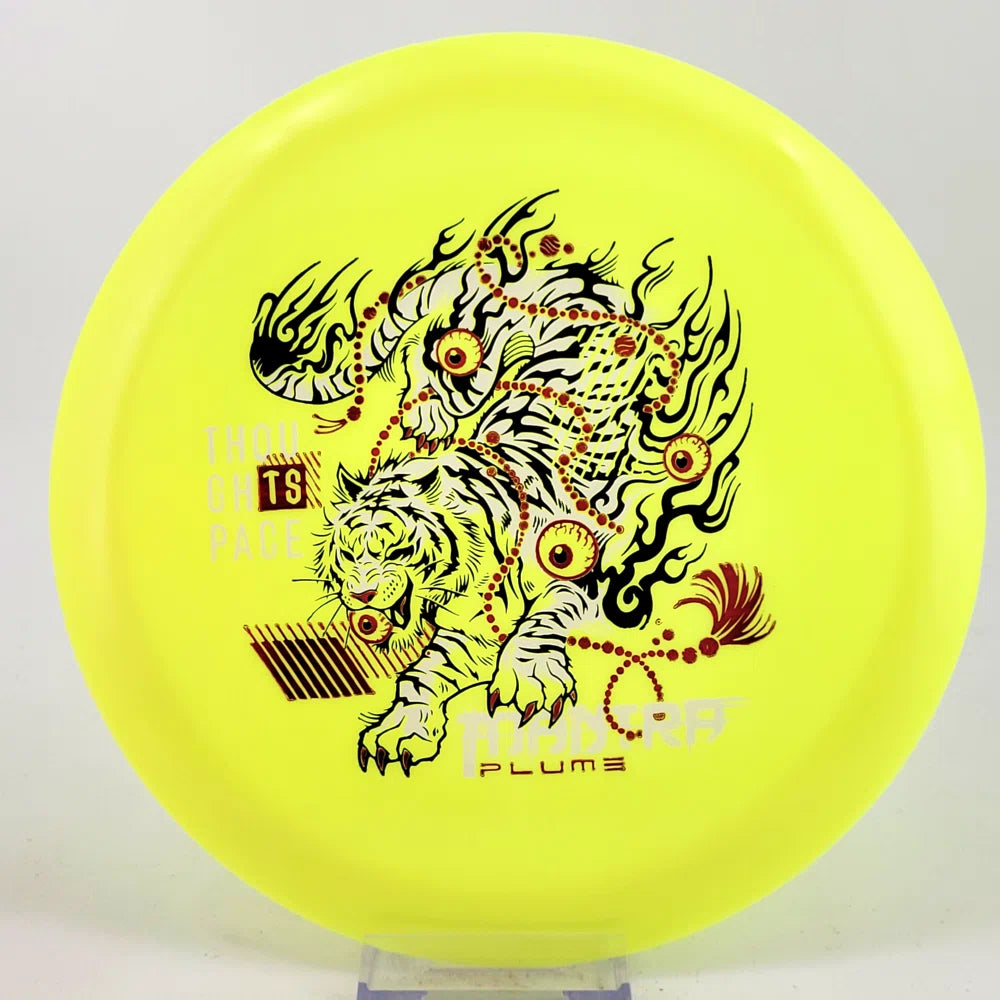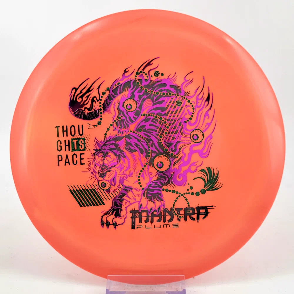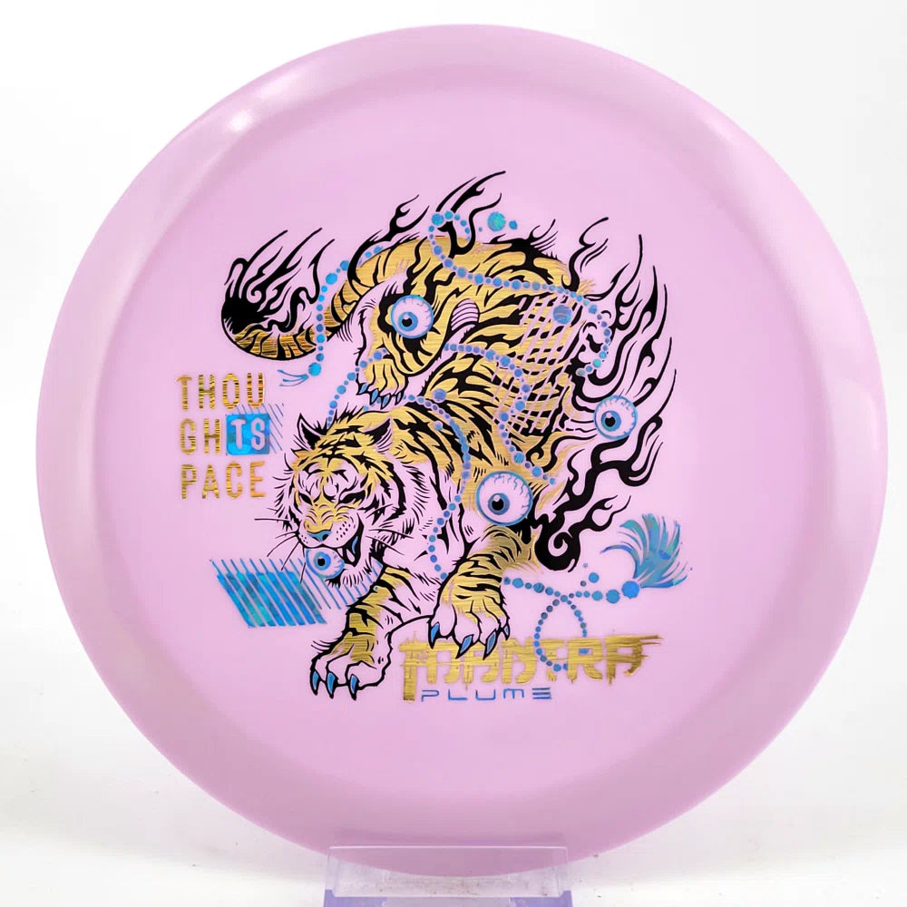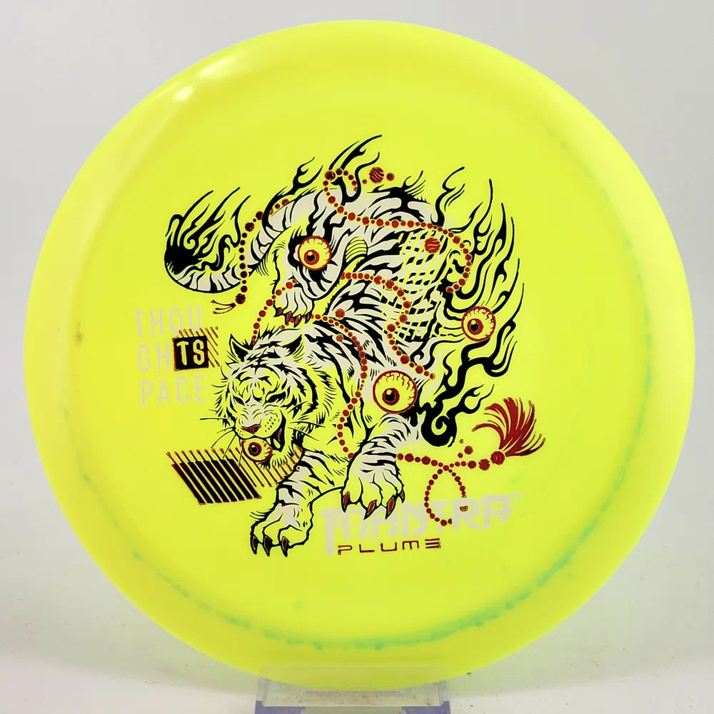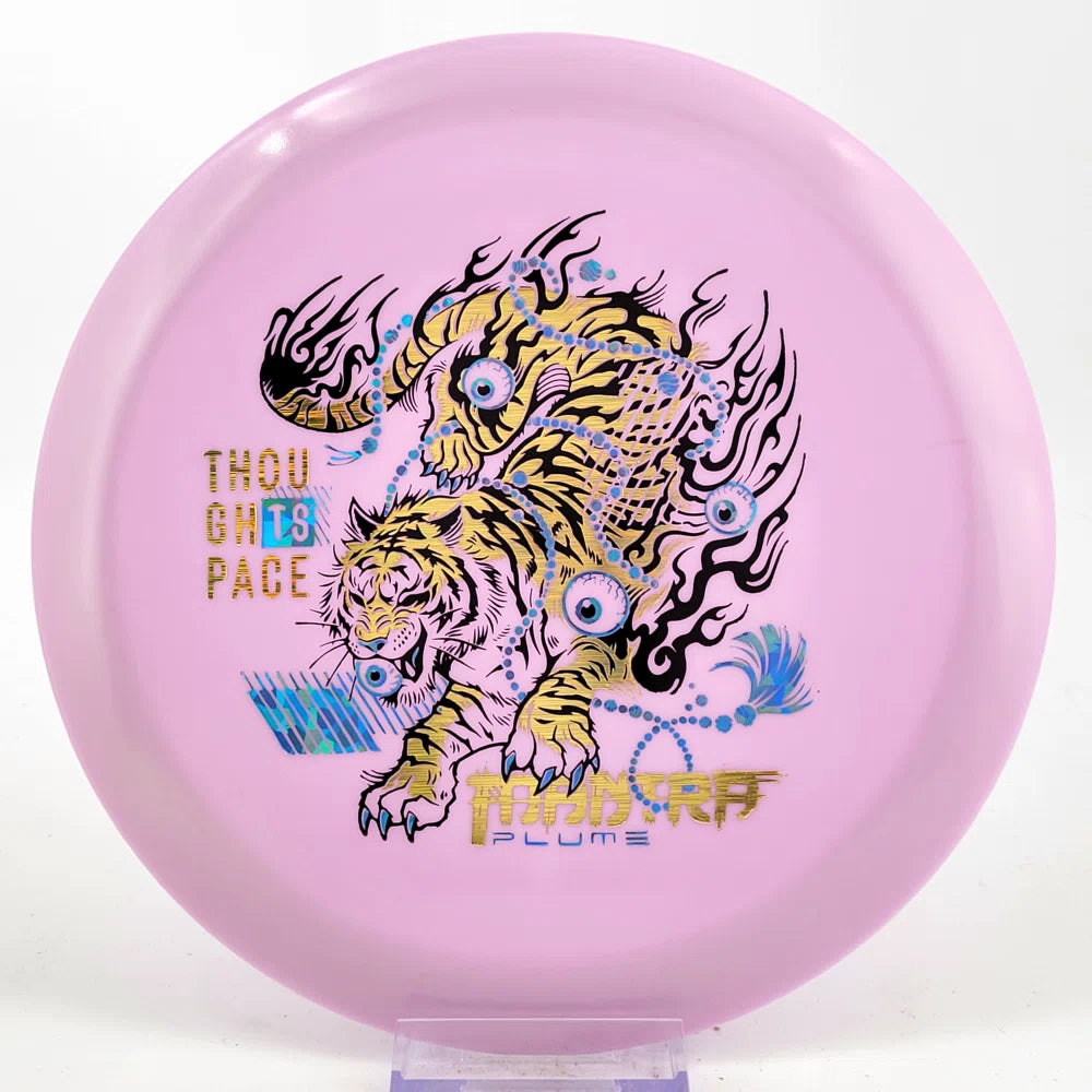 About the plastic: Plume Plastic introduces an ultralight blend that integrates microbubbles throughout the disc for evenly distributed weight reduction. The result is a disc that launches with less effort, maintains surprising stability, and glides with intention. Comparable in feel to MVP’s Fission plastic, Plume provides that same high-performance lightness with the unmistakable TSA touch — detailed, durable, and visually striking.