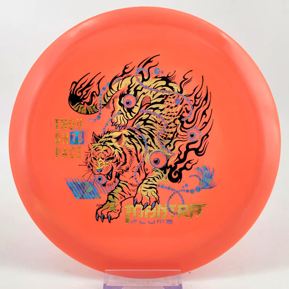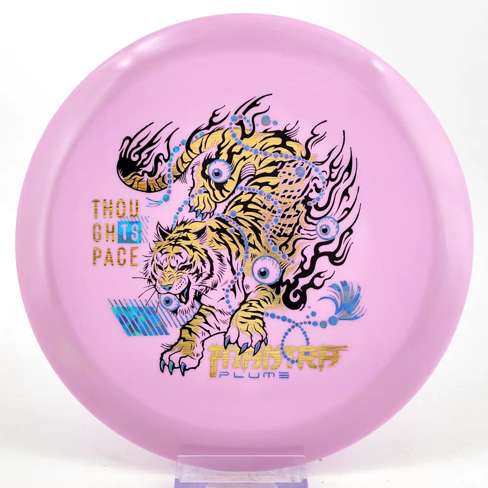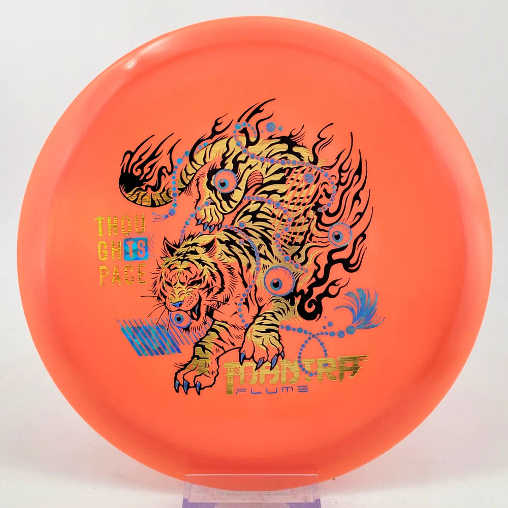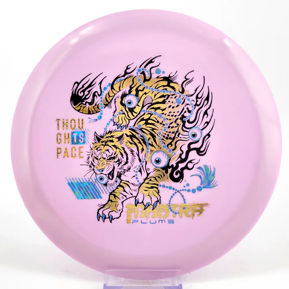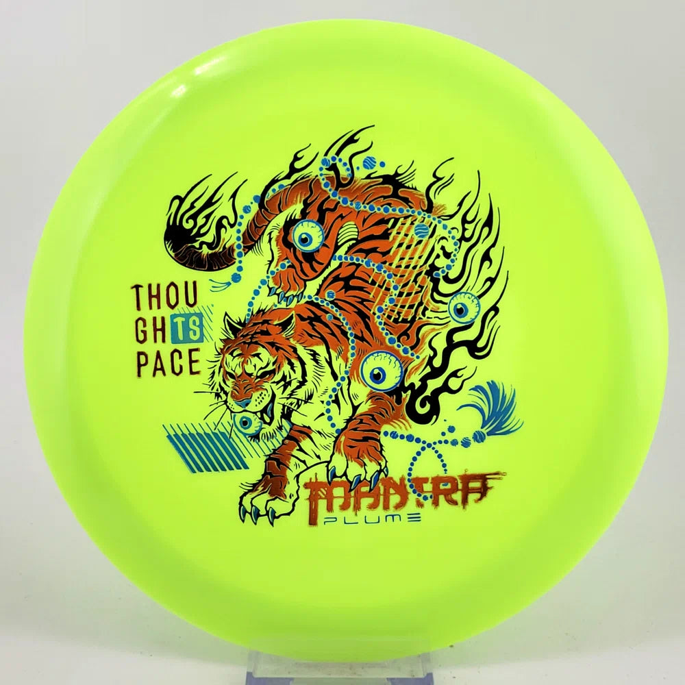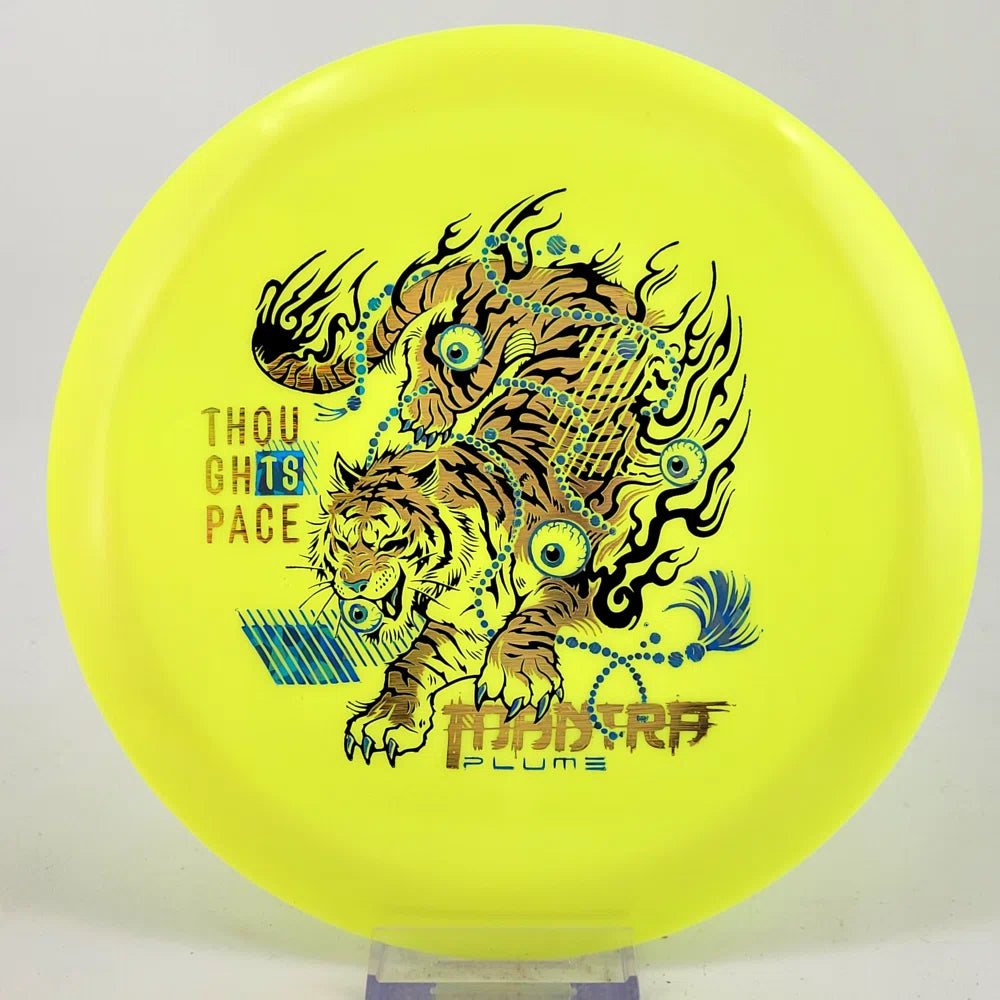 About the plastic: Plume Plastic introduces an ultralight blend that integrates microbubbles throughout the disc for evenly distributed weight reduction. The result is a disc that launches with less effort, maintains surprising stability, and glides with intention. Comparable in feel to MVP’s Fission plastic, Plume provides that same high-performance lightness with the unmistakable TSA touch — detailed, durable, and visually striking.