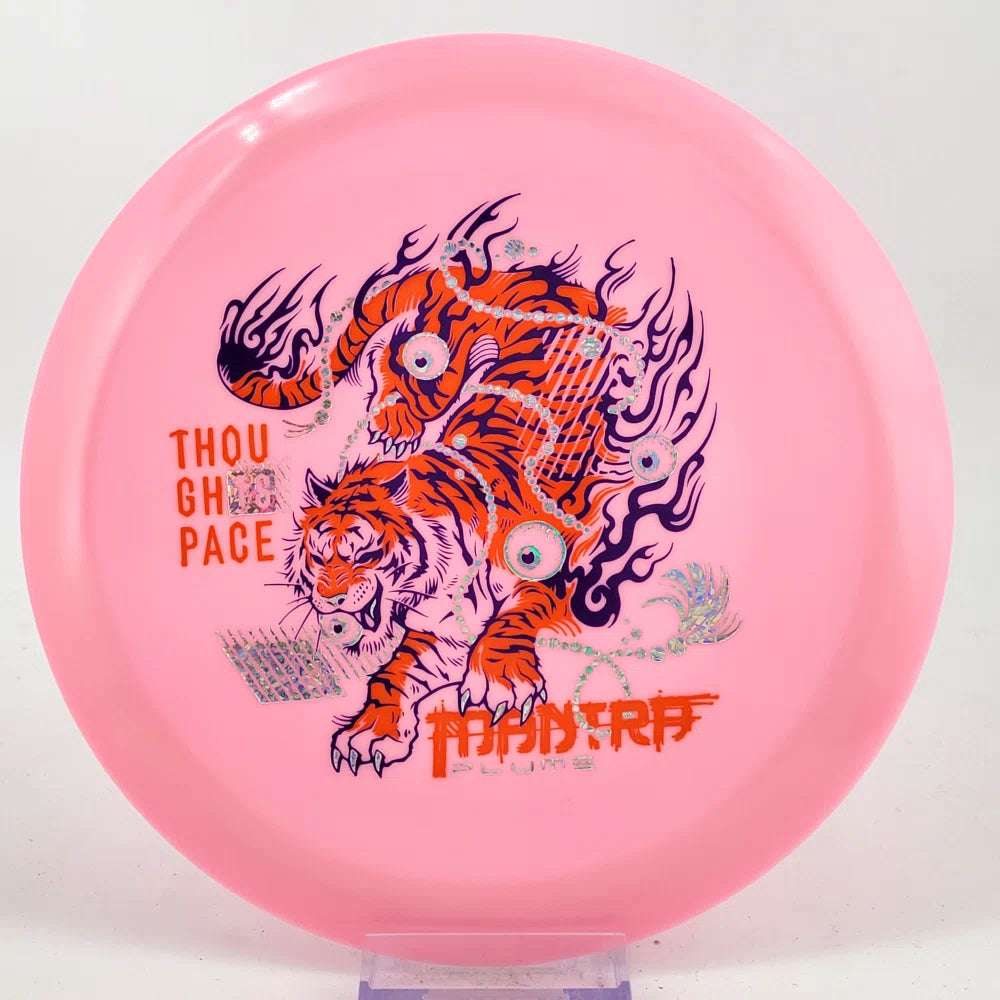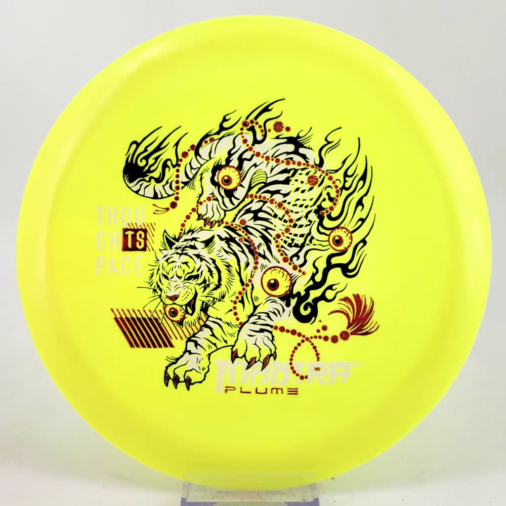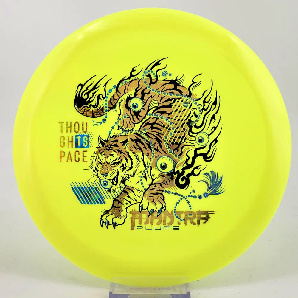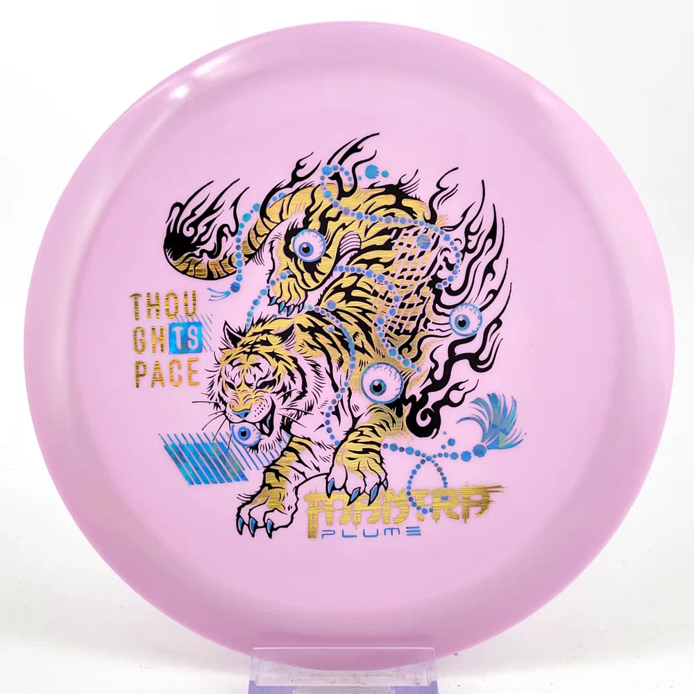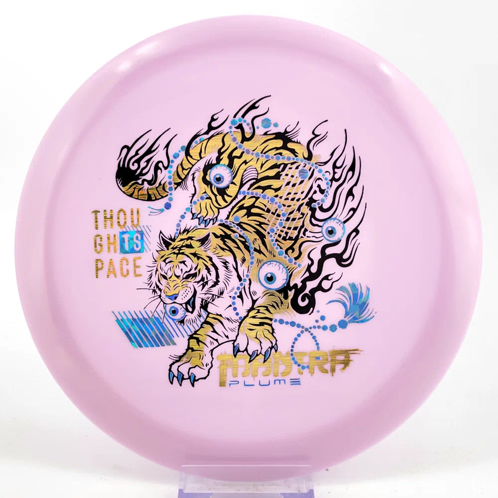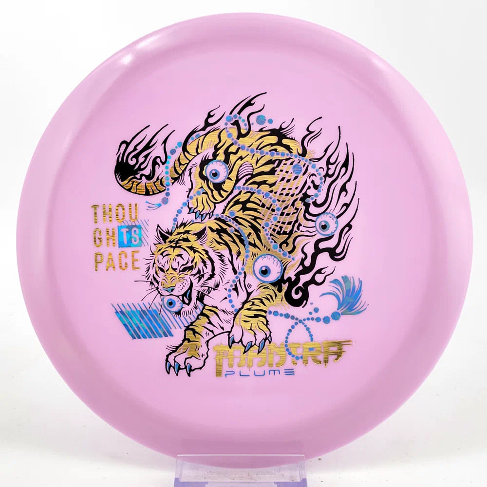 About the plastic: Plume Plastic introduces an ultralight blend that integrates microbubbles throughout the disc for evenly distributed weight reduction. The result is a disc that launches with less effort, maintains surprising stability, and glides with intention. Comparable in feel to MVP’s Fission plastic, Plume provides that same high-performance lightness with the unmistakable TSA touch — detailed, durable, and visually striking.