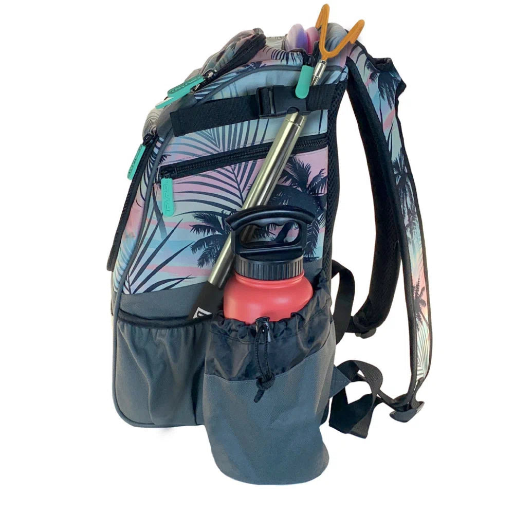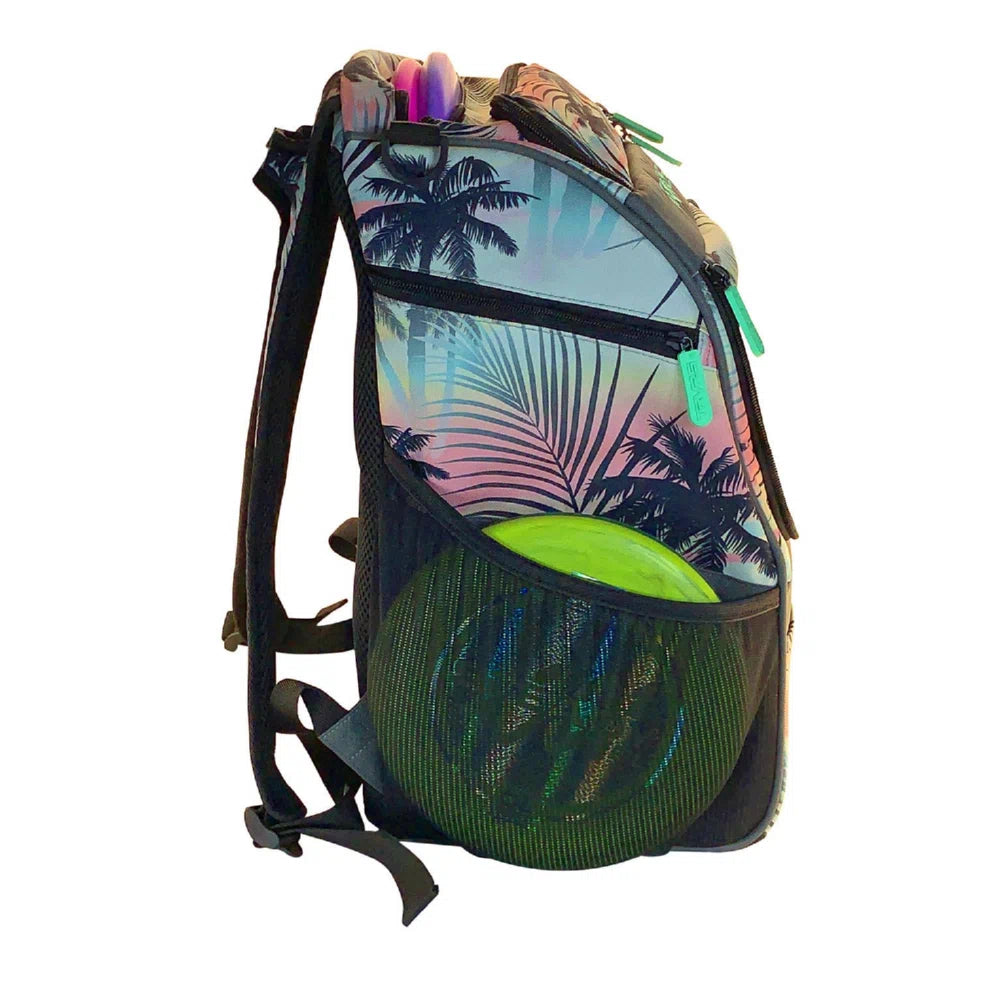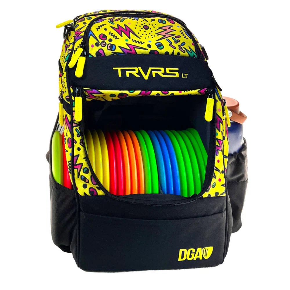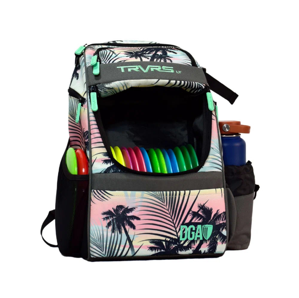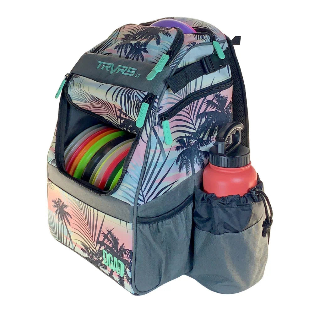 The TRVRS LT (Traverse Lite) backpack-style Disc Golf Bag is all you need to take with you on any course! Boasting a 20+ disc capacity, this feature-packed bag has eight different pockets and storage pouches for your discs and gear (in addition to the main disc compartment). Notable highlights including the multiple pockets are the large water bottle holder, accessory strap, and ergonomic shoulder straps with a convenient carrying handle.