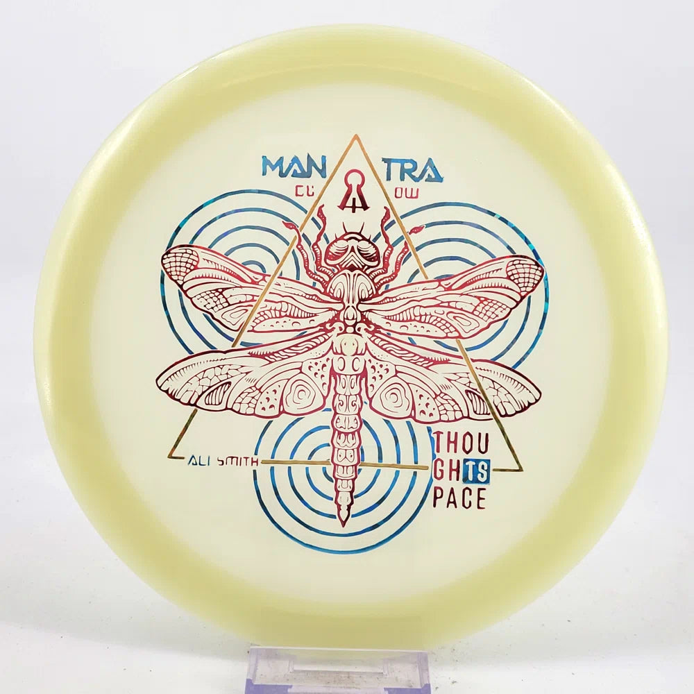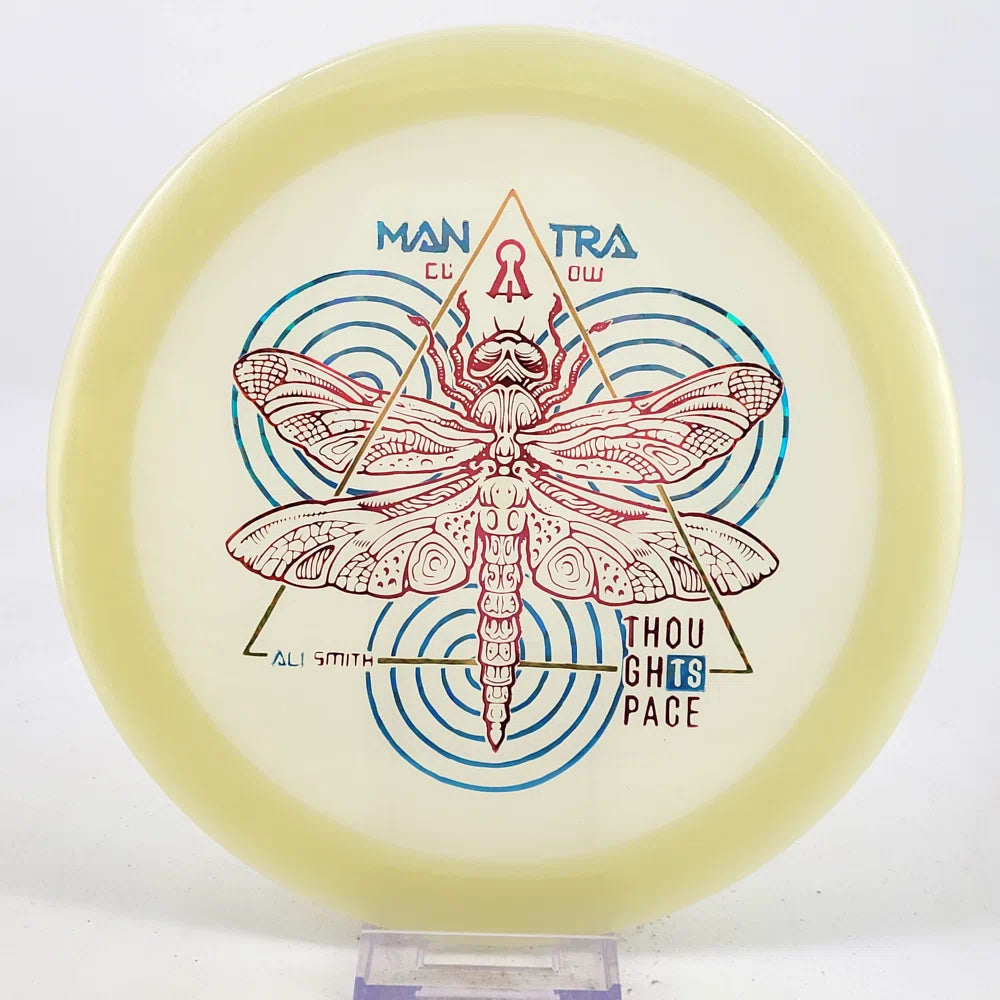 This is what TSA says about the Mantra: "The Mantra is Thought Space Athletics was the first fairway driver of their new disc line. With flight numbers of 9/6/-2/1, the average player will find it to be easily controllable with the ability to shape lines with it and get effortless distance. More advanced players will find the mantra to be a great hyzer flip disc or perfect for rollers."