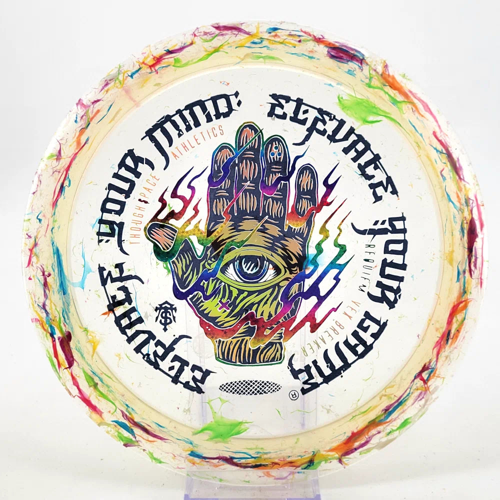 About the Plastic: VEX Breaker is a visual explosion, vibrant shards and swirling fragments suspended in the plastic, each disc a one-of-a-kind canvas. The same grip and durability you expect from VEX, now with a look that stops you in your tracks.