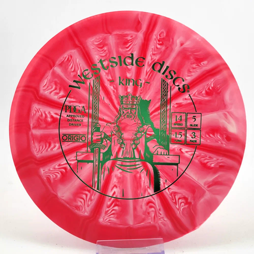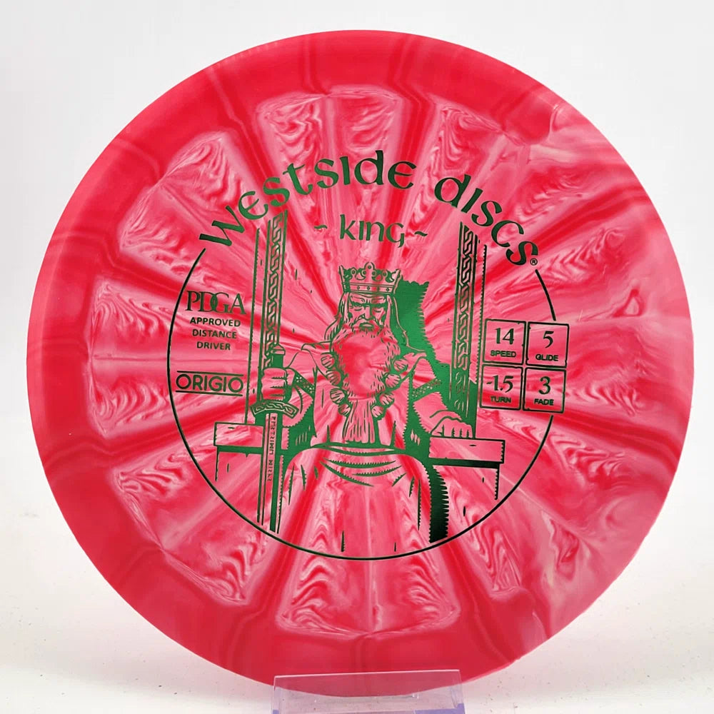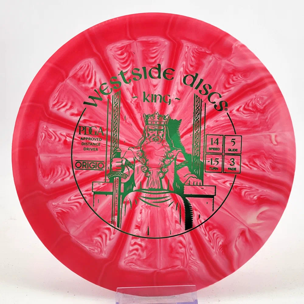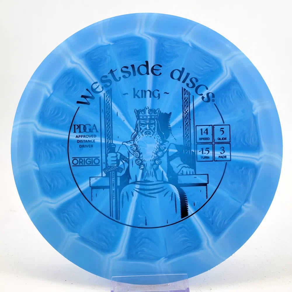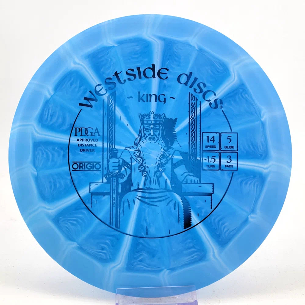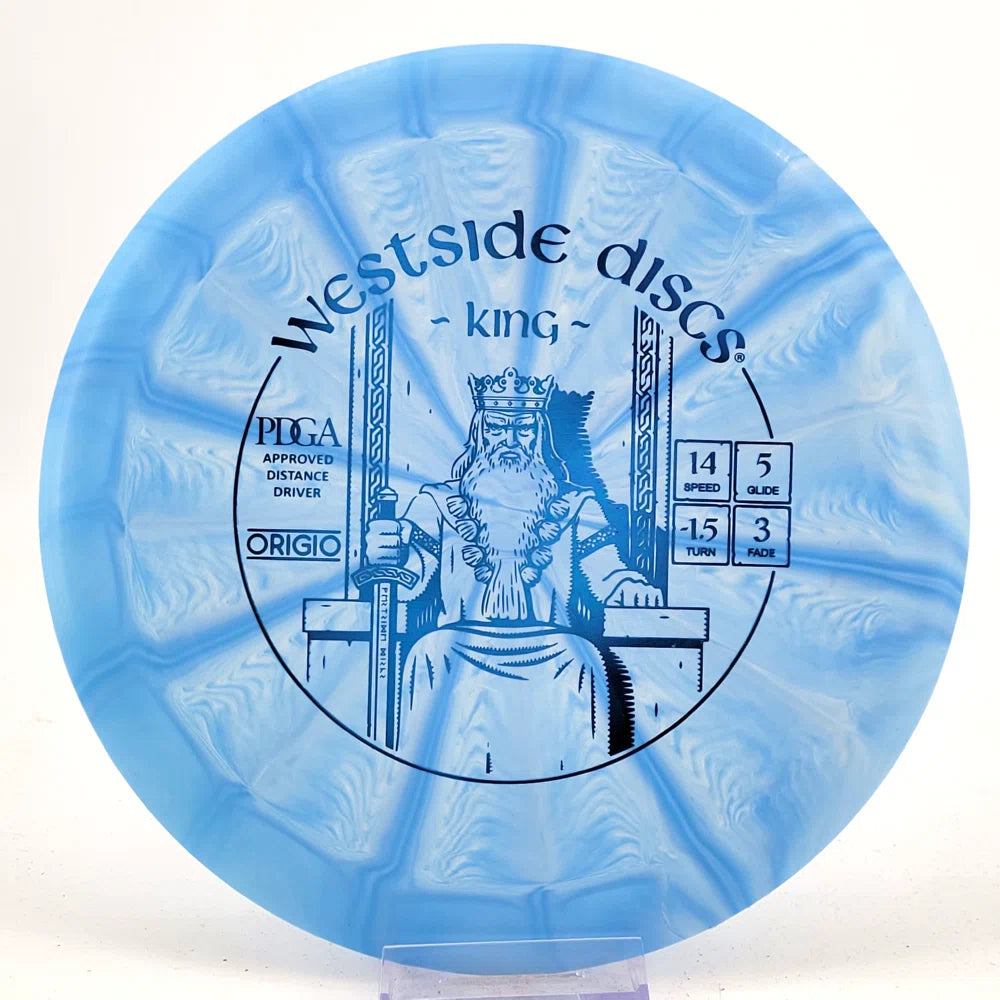Westside's most popular high speed driver, the Westside King is our fastest disc for all levels of players. The farthest flying disc in our line the King is designed to allow the average player to experience a long distance flight. It has a good grip and a nice high dome. It traps the air and rides on it like you have never seen before. For professional players the King will be your longest flying disc and roller in your bag. For lower speed arms this will finally give you that full flight you always wanted on the course.