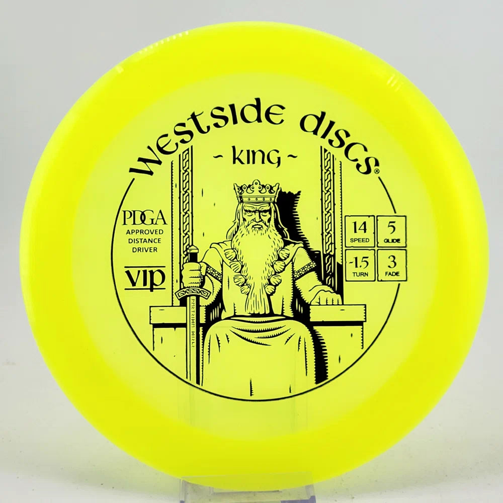 Westside's most popular high speed driver, the Westside King is our fastest disc for all levels of players. The farthest flying disc in our line the King is designed to allow the average player to experience a long distance flight. It has a good grip and a nice high dome. It traps the air and rides on it like you have never seen before. For professional players the King will be your longest flying disc and roller in your bag. For lower speed arms this will finally give you that full flight you always wanted on the course.